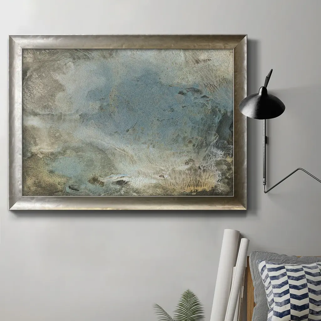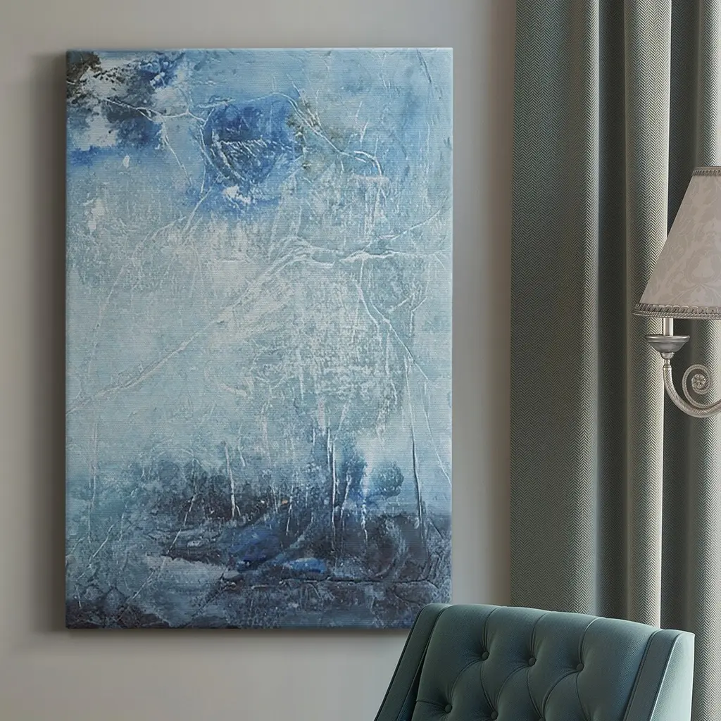 A mixture of cool blue and grey tones mixing together like water and oil. Printed onto smooth plexiglass this vibrant artwork has a sleek, glossy finish and is part of our curated collaboration with Cobra Art.