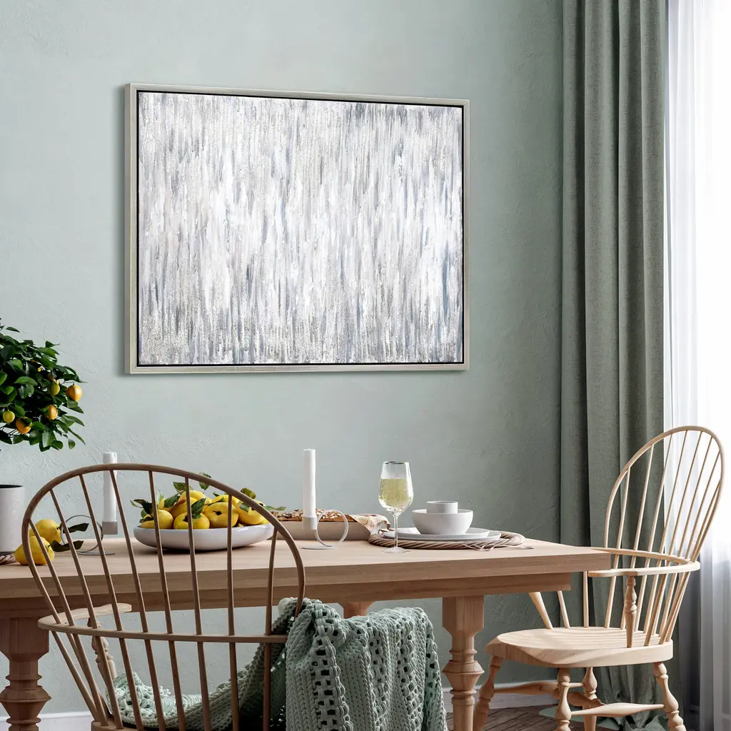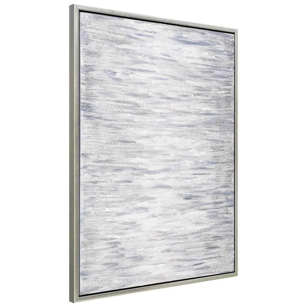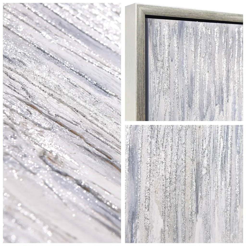 Gray Field Textured Glitter Hand Painted Canvas Wall Art - Resin - Silver