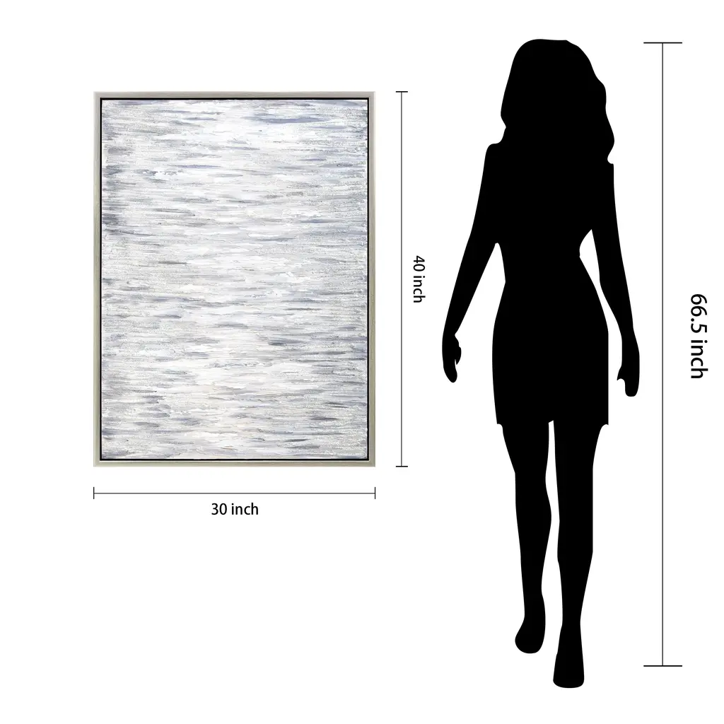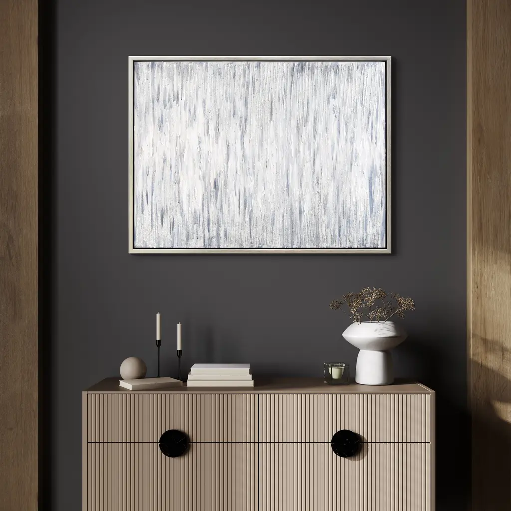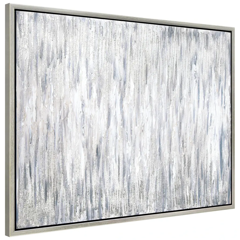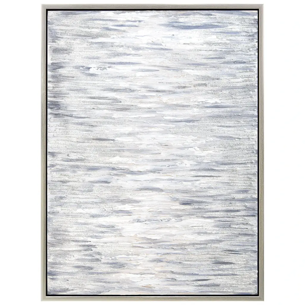 Gray Field Textured Glitter Hand Painted Canvas Wall Art - Resin - Silver