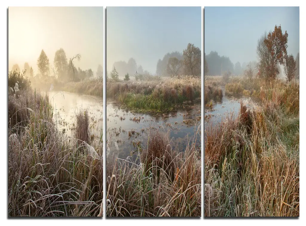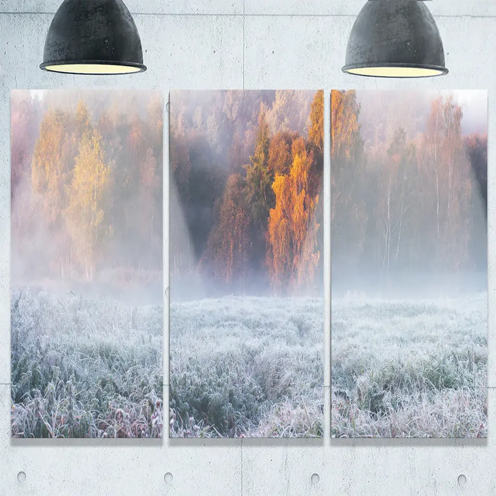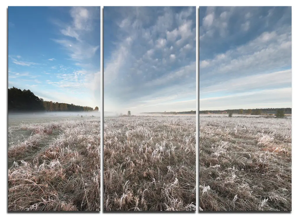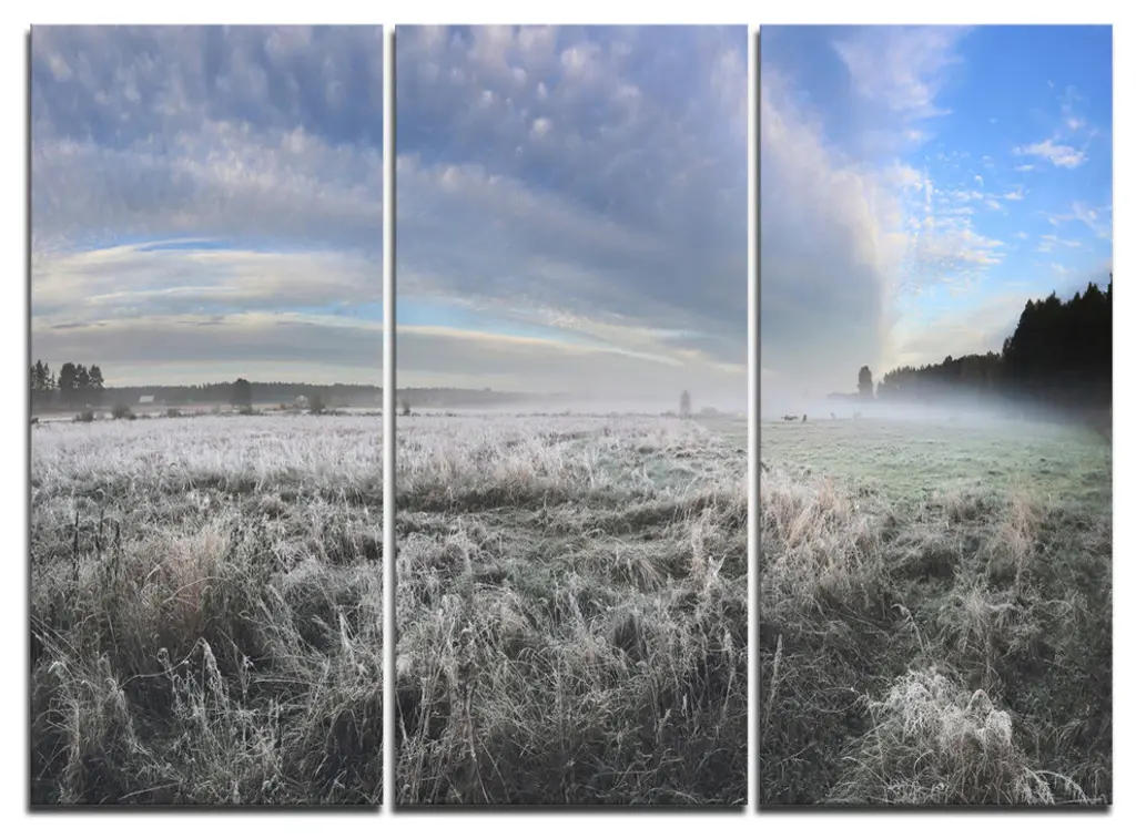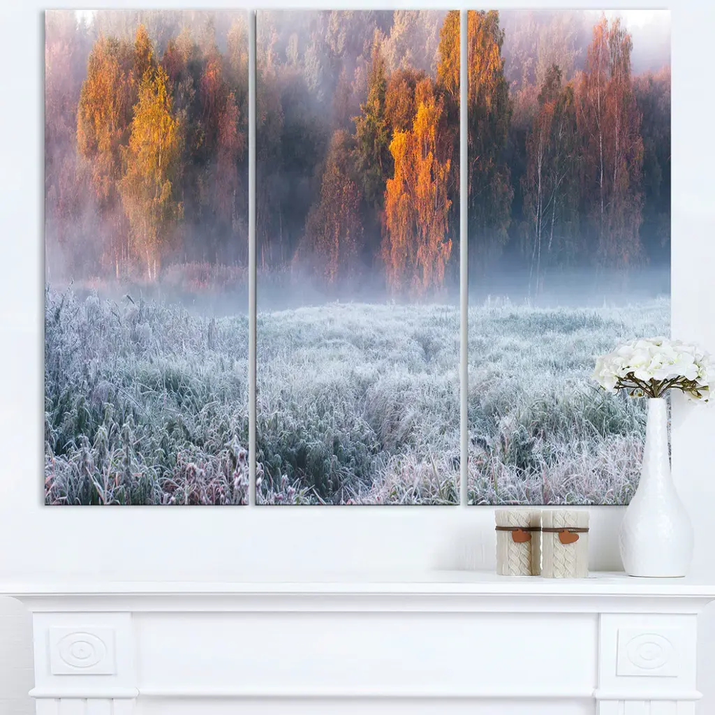 "Gray Hoarfrost Design By Winter" Metal Wall Art, 3 Panels, 36"x28"
