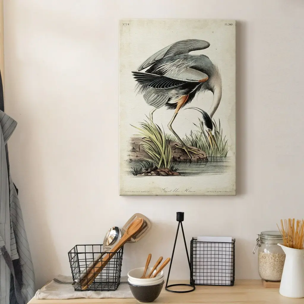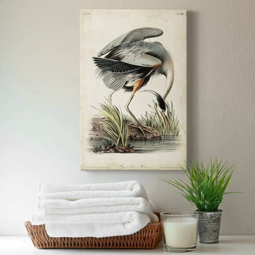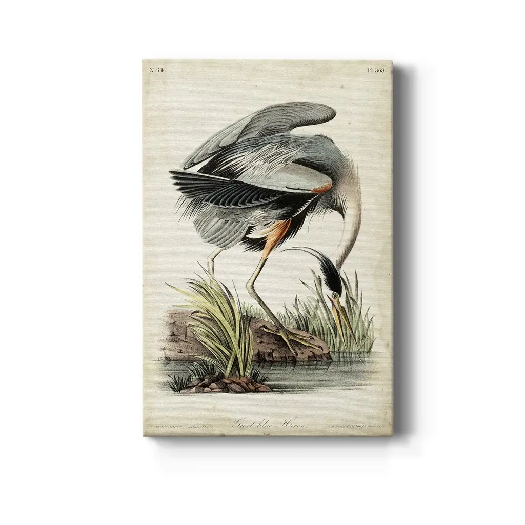 Great Blue Heron Premium Gallery Wrapped Canvas - Ready to Hang A premium hand stretched gallery wrapped canvas print created to last. Featuring a beveled a solid wood stretcher bar, each piece comes ready to hand 5 SIZES AVAILABLE 8''X12'' - Overall Size 16'X20'' - Overall Size 24''x32'' - Overall Size 30''x40'' - Overall Size 36''x48'' - Overall Size Each piece is made to order. Built to Last Each piece comes ready to hang Solid wood stretcher Fade and Water resistant Made domestically