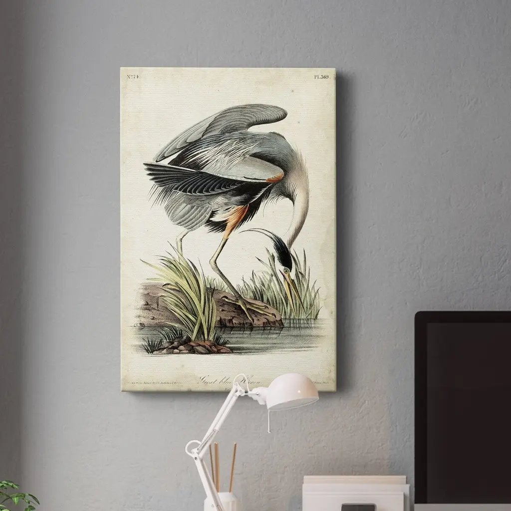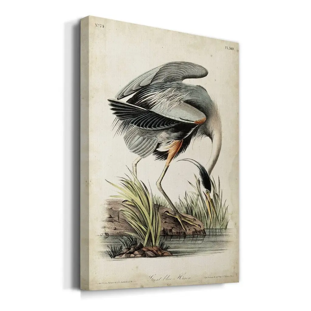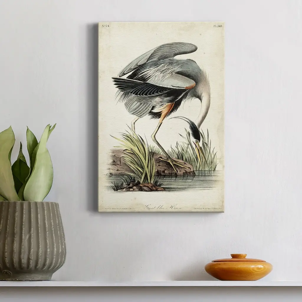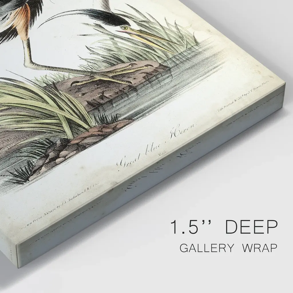Great Blue Heron Premium Gallery Wrapped Canvas - Ready to Hang A premium hand stretched gallery wrapped canvas print created to last. Featuring a beveled a solid wood stretcher bar, each piece comes ready to hand 5 SIZES AVAILABLE 8''X12'' - Overall Size 16'X20'' - Overall Size 24''x32'' - Overall Size 30''x40'' - Overall Size 36''x48'' - Overall Size Each piece is made to order. Built to Last Each piece comes ready to hang Solid wood stretcher Fade and Water resistant Made domestically