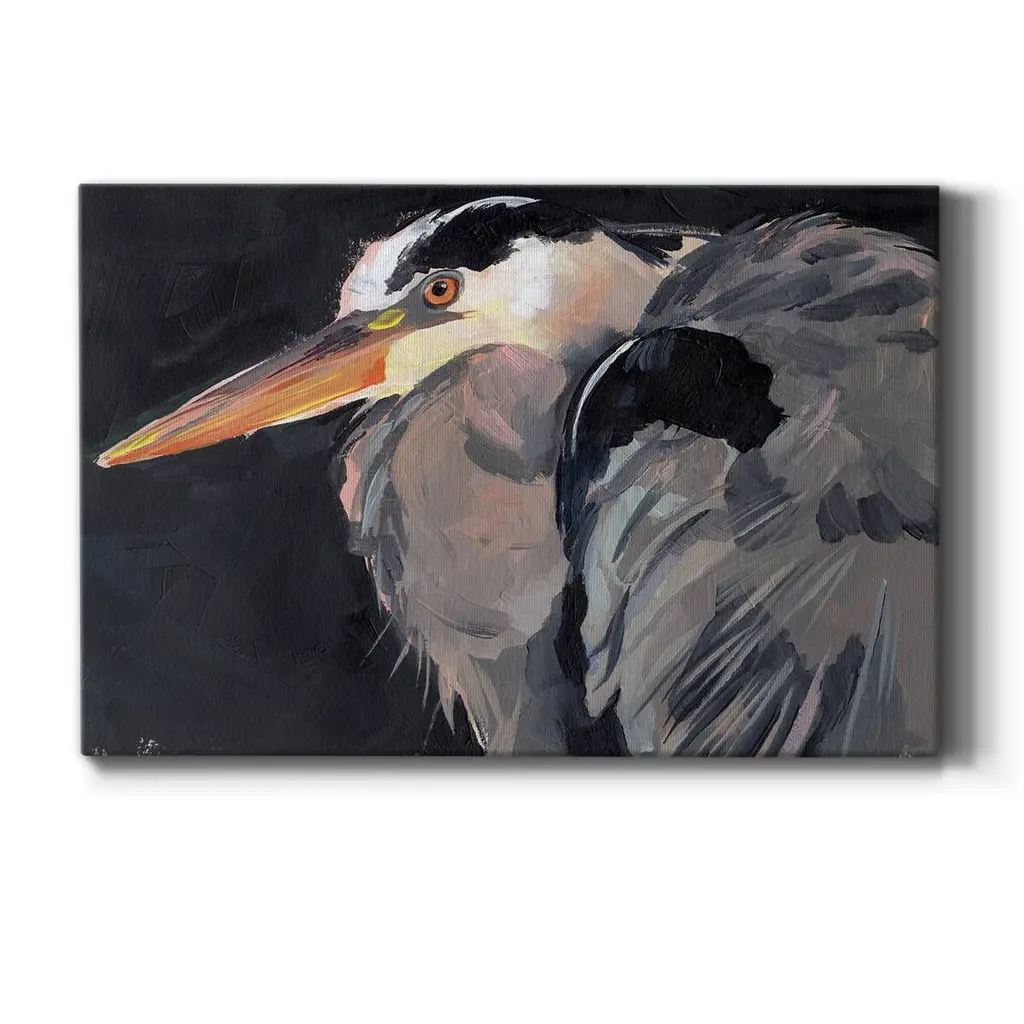 Great Heron II Premium Gallery Wrapped Canvas - Ready to Hang A premium hand stretched gallery wrapped canvas print created to last. Featuring a beveled a solid wood stretcher bar, each piece comes ready to hand 6 SIZES AVAILABLE 8''X12'' - Overall Size 12''X18'' - Overall Size 18''X27'' - Overall Size 24''x36'' - Overall Size 32''x48'' - Overall Size 40''x60'' - Overall Size Each piece is made to order. Built to Last Each piece comes ready to hang Solid wood stretcher Fade and Water resistant Made domestically
