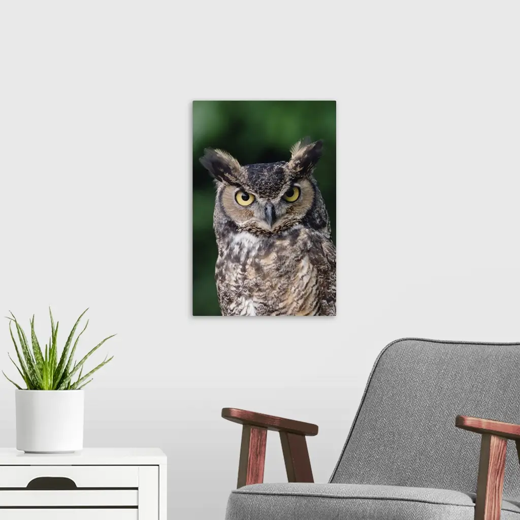 Great Horned Owl (Bubo virginianus) close-up portrait, North America