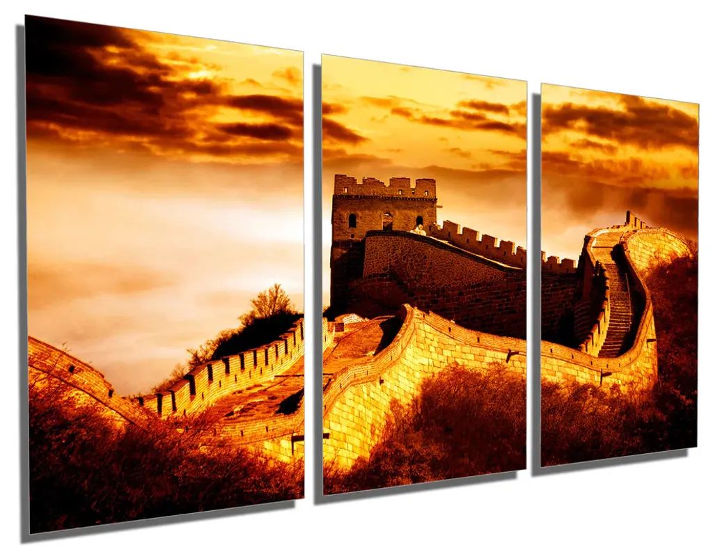 72"œ x 36"œ total size. Ready To Hang! (3 pieces - 24"œ x 36"œ each). 3 Panel Split (Triptych) Metal Print ft. Great Wall of China, Beijing under cloudy skies. Modern metal wall art for home or office wall decor & interior design. Printed on Luxurious, HD aluminum glossy metal panels. Multi panel art.. HD aluminum panels. Metal print wall art. Includes Shadow Wall Mount on the back.• Aluminum Metal Wall Art• Made in USA• Ready to hang - No assembly required• Shadow mount hardware on the back• 0.045"œ thick HD Aluminum Panels• Scratch resistant, glossy finish• Superb color clarity, luxurious prints• Epson printing process• For indoor or moisture rich environment use• Easy to clean. Gently wipe with microfiber cloth.