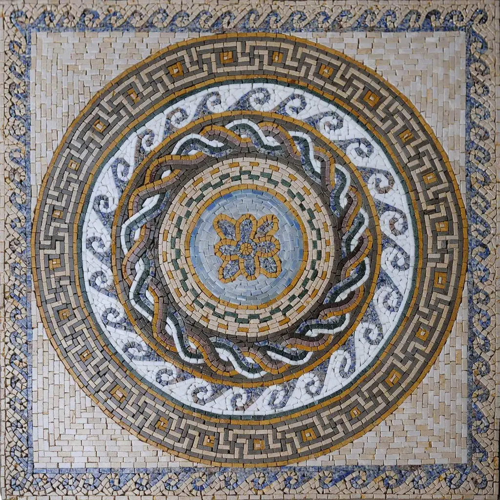 Introducing the Greco-Roman Floral Mosaic - Dela IV, a stunning tribute to the timeless beauty of classic design. This exquisite mosaic artwork embodies the elegance and sophistication of Old World charm, making it the perfect addition to elevate any space in your home. Crafted with meticulous care and attention to detail, the Dela IV features graceful crested waves that create a sense of movement and flow, while the striking Greek key border adds a distinctive touch of authenticity and heritage.Handmade from high-quality marble, each piece is a testament to traditional craftsmanship. The natural veining and variations in the stone lend a unique character to every mosaic, ensuring that your selection is truly one-of-a-kind. Whether you're looking to enhance your living room, kitchen, or bathroom, this mosaic serves as a stunning centerpiece that captures the essence of Greco-Roman artistry.We understand that every home is unique, which is why the Dela IV is available in a selection of standard sizes to suit a variety of spaces. However, if you're seeking something specifically tailored to your project, you can easily place a custom order to achieve the perfect fit. Transform your interior design with the Greco-Roman Floral Mosaic - Dela IV, where history meets modern elegance in a breathtaking fusion of style and sophistication. Rediscover the allure of classic design and bring the spirit of ancient artistry into your everyday life.