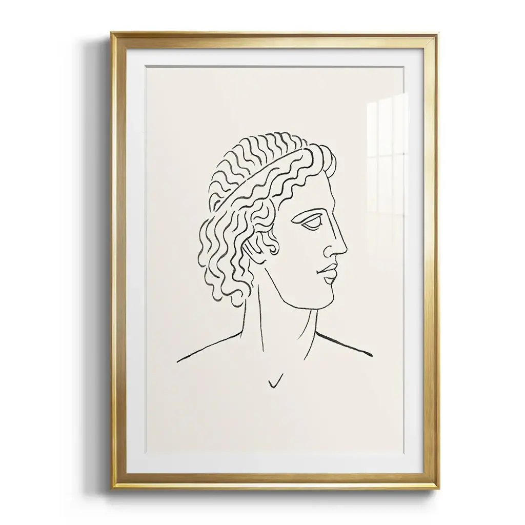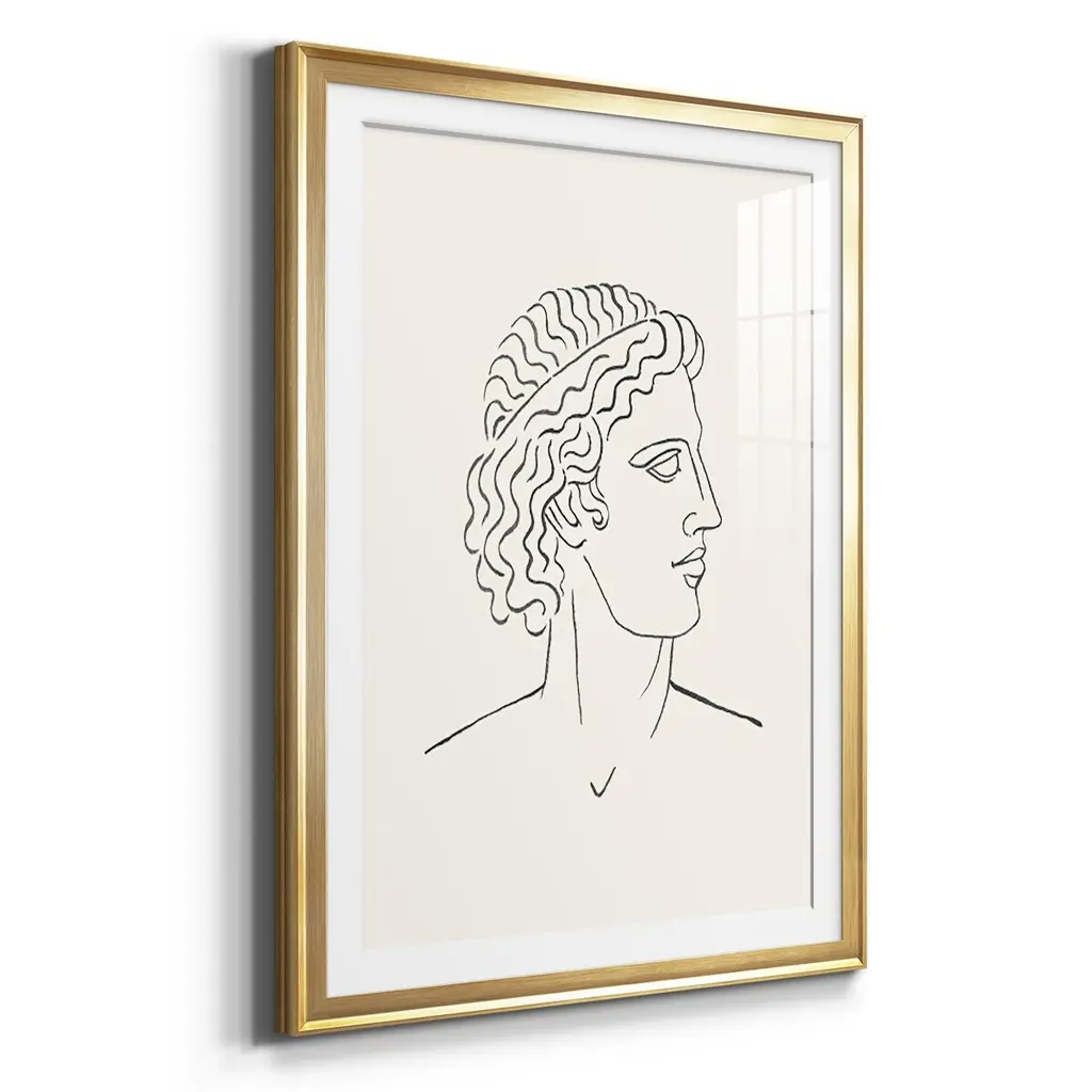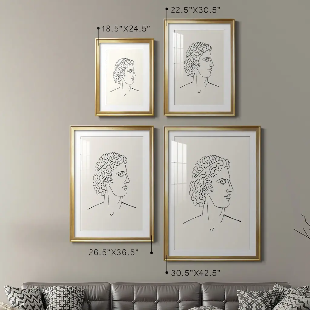 Greek Busts I Premium Framed Print - Ready to Hang A Premium Framed Print created to last. Framed in distressed wood and available in an array of sizes and colors Featuring a beveled a solid wood stretcher bar, each piece comes ready to hand 4 SIZES AVAILABLE 30.5''X42.5'' - Overall Size 26.5'X36.5'' - Overall Size 22.5''x30.5'' - Overall Size 18.5''x24.5'' - Overall Size Each piece is made to order. Each piece comes with hanging hardware. Made in the USA Ready to Hang Giclee Paper Print Acrylic Glass Beveled Matt Board