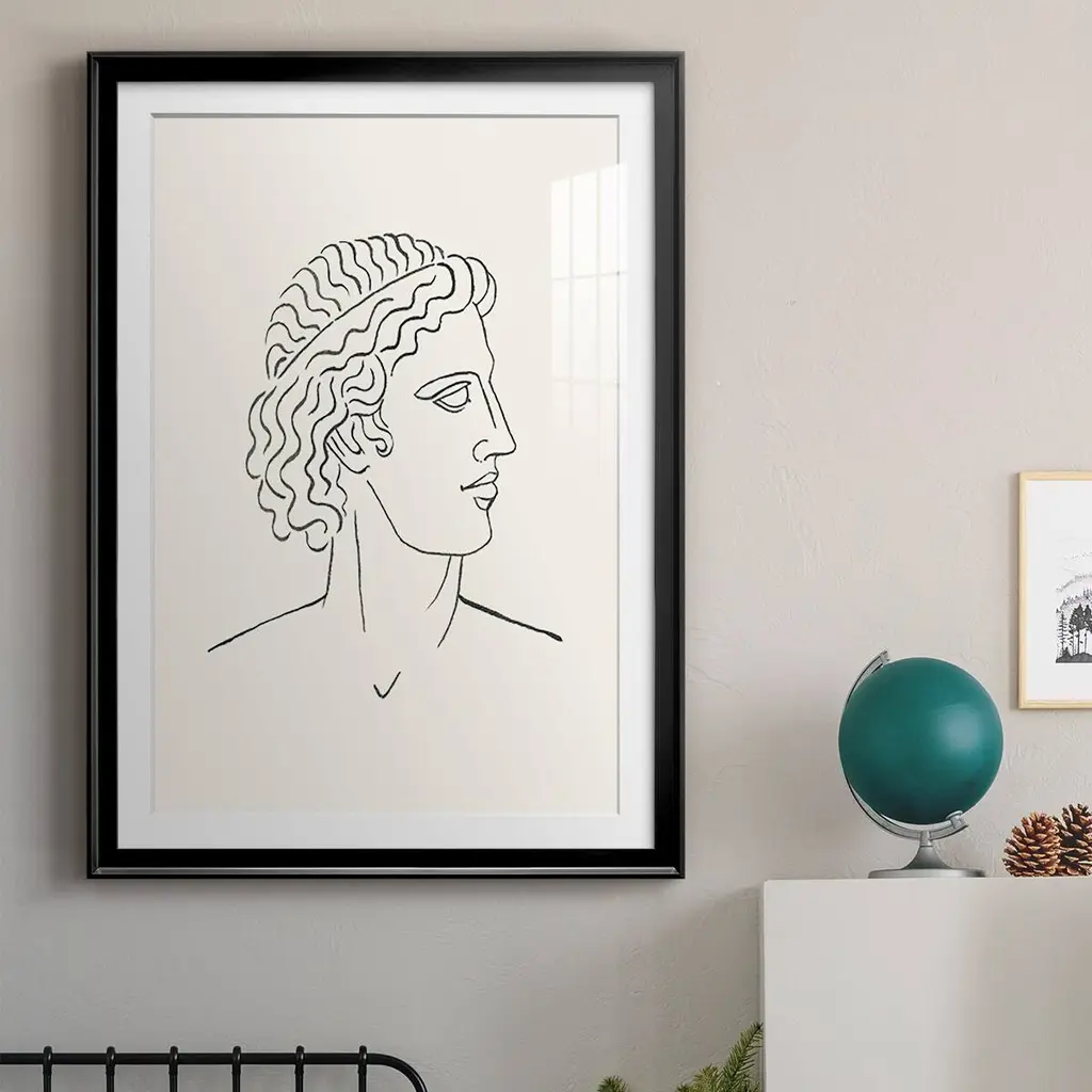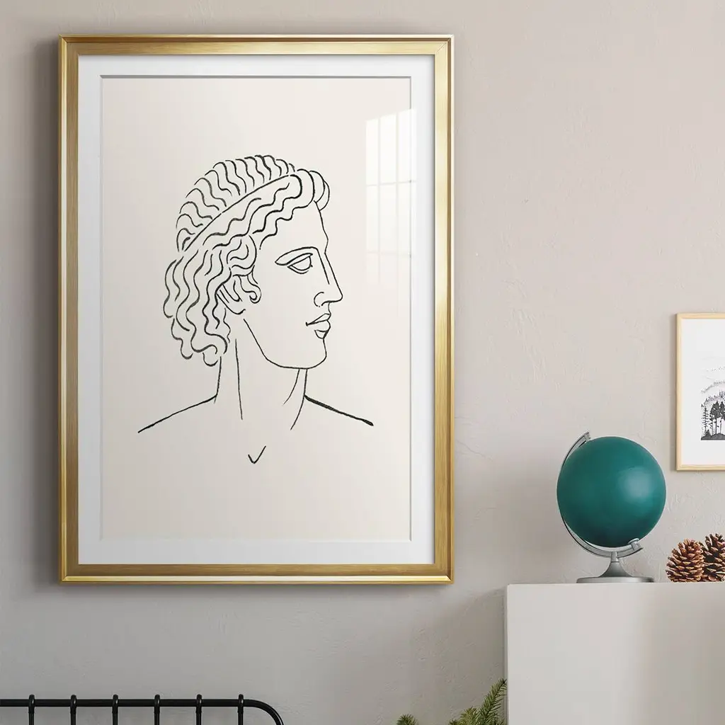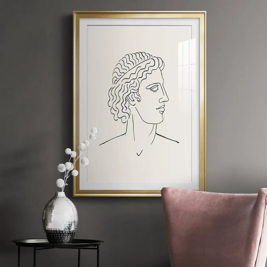 Greek Busts I Premium Framed Print - Ready to Hang A Premium Framed Print created to last. Framed in distressed wood and available in an array of sizes and colors Featuring a beveled a solid wood stretcher bar, each piece comes ready to hand 4 SIZES AVAILABLE 30.5''X42.5'' - Overall Size 26.5'X36.5'' - Overall Size 22.5''x30.5'' - Overall Size 18.5''x24.5'' - Overall Size Each piece is made to order. Each piece comes with hanging hardware. Made in the USA Ready to Hang Giclee Paper Print Acrylic Glass Beveled Matt Board
