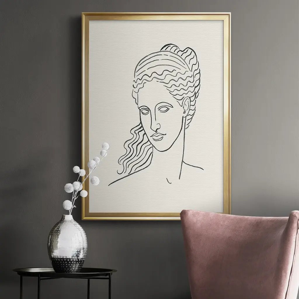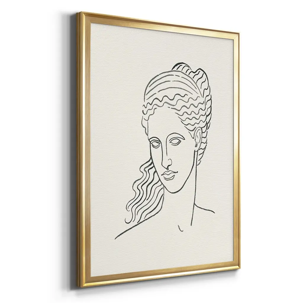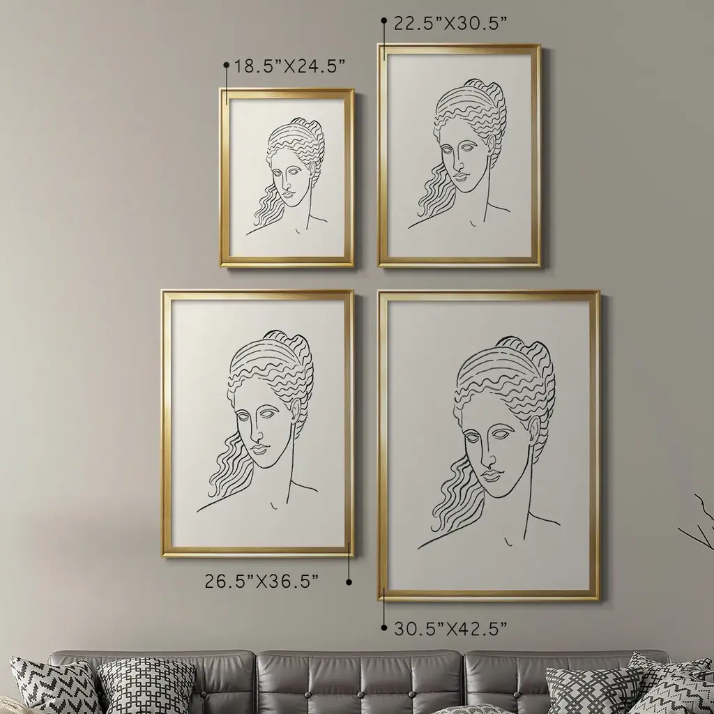 Greek Busts II Premium Framed Print - Ready to Hang A Premium Framed Print created to last. Framed in distressed wood and available in an array of sizes and colors Featuring a beveled a solid wood stretcher bar, each piece comes ready to hand 4 SIZES AVAILABLE 30.5''X42.5'' - Overall Size 26.5'X36.5'' - Overall Size 22.5''x30.5'' - Overall Size 18.5''x24.5'' - Overall Size Each piece is made to order. Each piece comes with hanging hardware. Made in the USA Ready to Hang