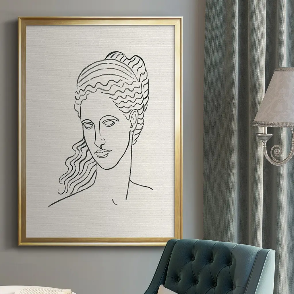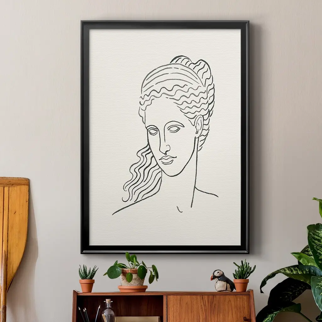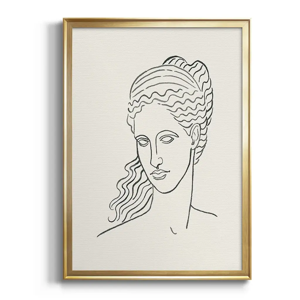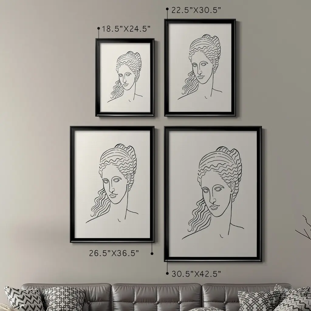 Greek Busts II Premium Framed Print - Ready to Hang A Premium Framed Print created to last. Framed in distressed wood and available in an array of sizes and colors Featuring a beveled a solid wood stretcher bar, each piece comes ready to hand 4 SIZES AVAILABLE 30.5''X42.5'' - Overall Size 26.5'X36.5'' - Overall Size 22.5''x30.5'' - Overall Size 18.5''x24.5'' - Overall Size Each piece is made to order. Each piece comes with hanging hardware. Made in the USA Ready to Hang