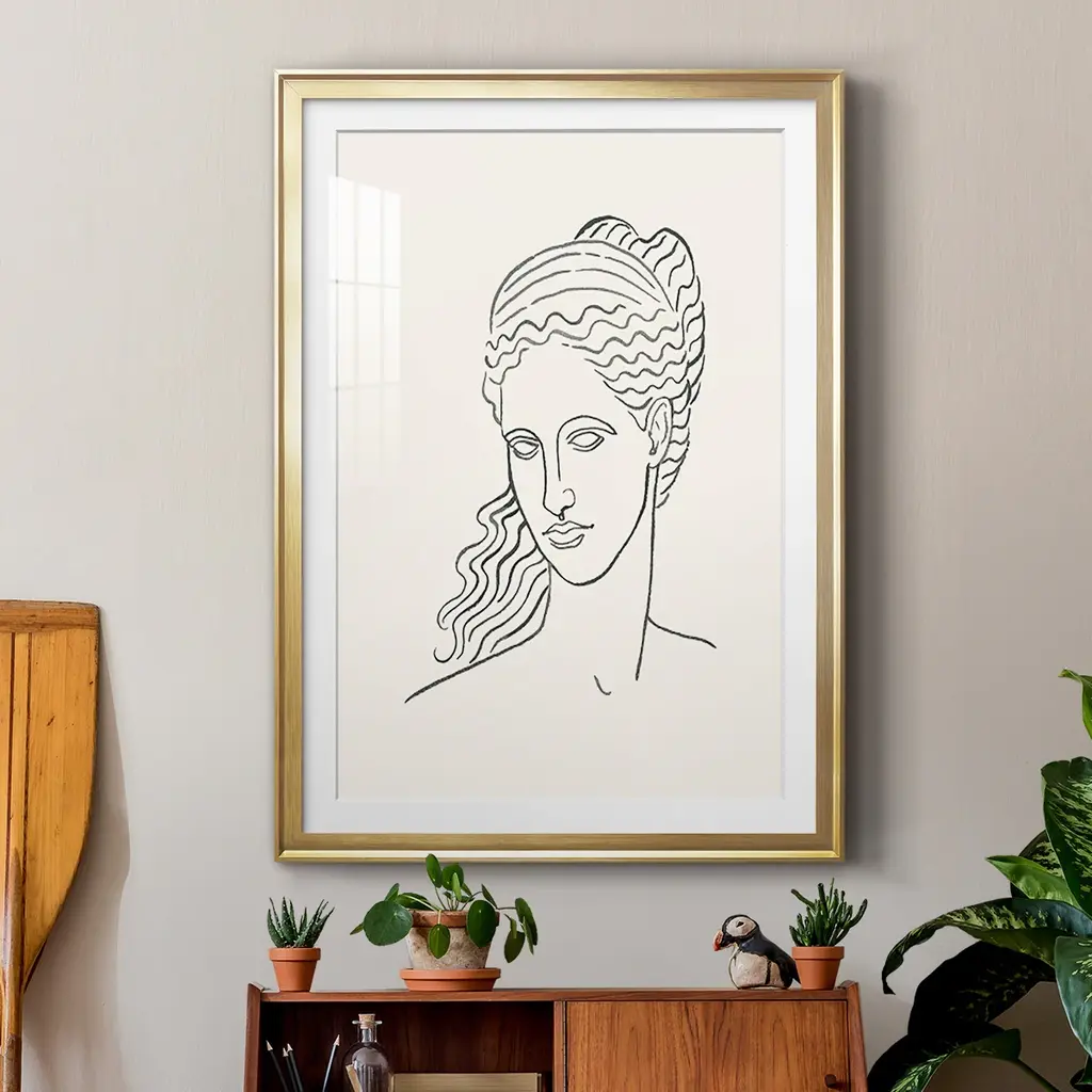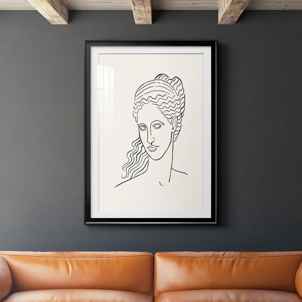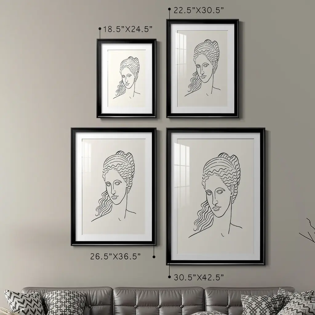 Greek Busts II Premium Framed Print - Ready to Hang A Premium Framed Print created to last. Framed in distressed wood and available in an array of sizes and colors Featuring a beveled a solid wood stretcher bar, each piece comes ready to hand 4 SIZES AVAILABLE 30.5''X42.5'' - Overall Size 26.5'X36.5'' - Overall Size 22.5''x30.5'' - Overall Size 18.5''x24.5'' - Overall Size Each piece is made to order. Each piece comes with hanging hardware. Made in the USA Ready to Hang Giclee Paper Print Acrylic Glass Beveled Matt Board