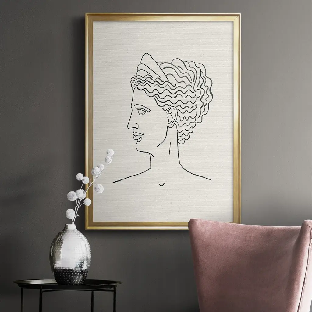Greek Busts III Premium Framed Print - Ready to Hang A Premium Framed Print created to last. Framed in distressed wood and available in an array of sizes and colors Featuring a beveled a solid wood stretcher bar, each piece comes ready to hand 4 SIZES AVAILABLE 30.5''X42.5'' - Overall Size 26.5'X36.5'' - Overall Size 22.5''x30.5'' - Overall Size 18.5''x24.5'' - Overall Size Each piece is made to order. Each piece comes with hanging hardware. Made in the USA Ready to Hang