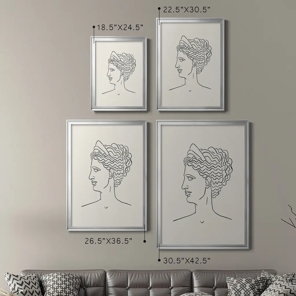 Greek Busts III Premium Framed Print - Ready to Hang A Premium Framed Print created to last. Framed in distressed wood and available in an array of sizes and colors Featuring a beveled a solid wood stretcher bar, each piece comes ready to hand 4 SIZES AVAILABLE 30.5''X42.5'' - Overall Size 26.5'X36.5'' - Overall Size 22.5''x30.5'' - Overall Size 18.5''x24.5'' - Overall Size Each piece is made to order. Each piece comes with hanging hardware. Made in the USA Ready to Hang