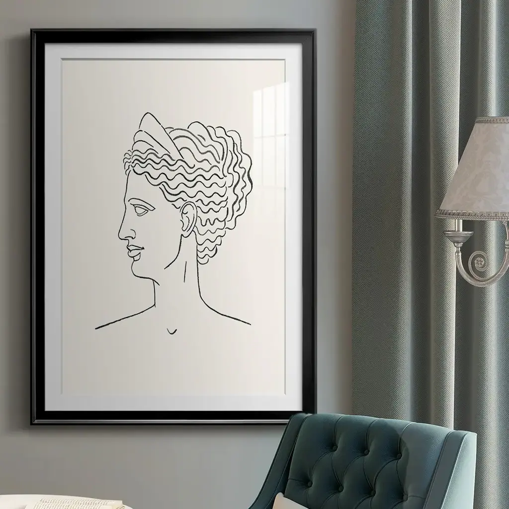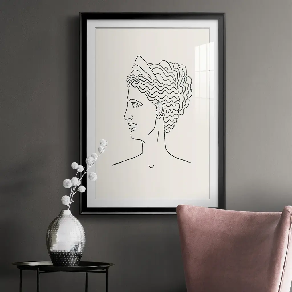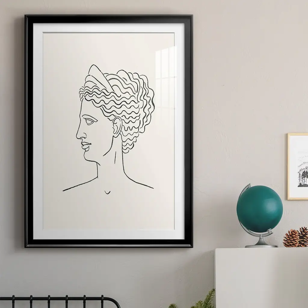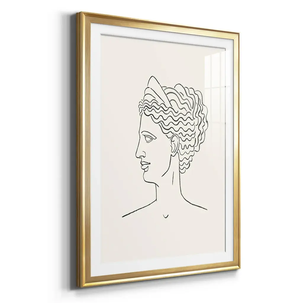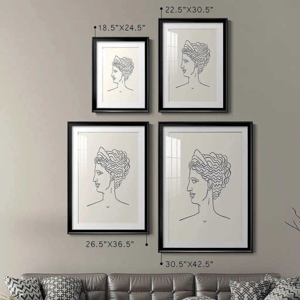 Greek Busts III Premium Framed Print - Ready to Hang A Premium Framed Print created to last. Framed in distressed wood and available in an array of sizes and colors Featuring a beveled a solid wood stretcher bar, each piece comes ready to hand 4 SIZES AVAILABLE 30.5''X42.5'' - Overall Size 26.5'X36.5'' - Overall Size 22.5''x30.5'' - Overall Size 18.5''x24.5'' - Overall Size Each piece is made to order. Each piece comes with hanging hardware. Made in the USA Ready to Hang Giclee Paper Print Acrylic Glass Beveled Matt Board