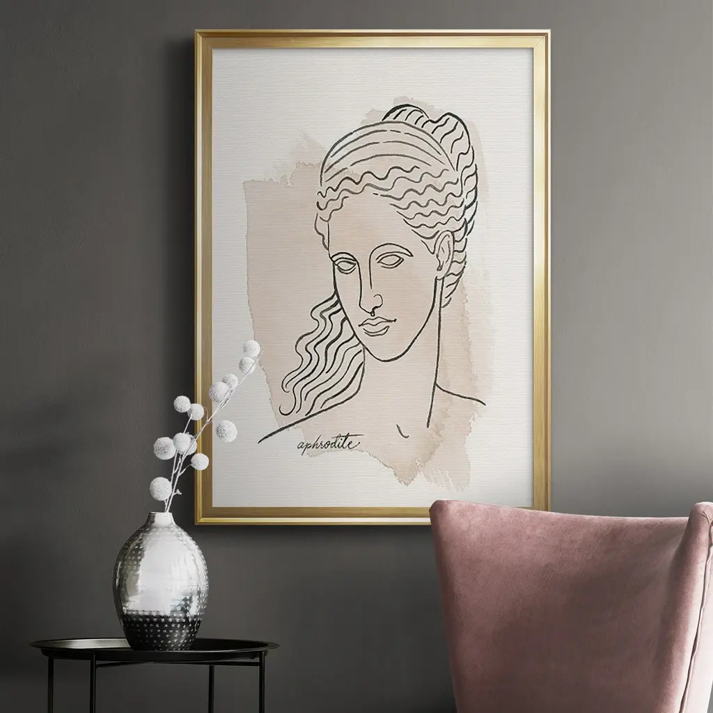 Greek Busts V Premium Framed Print - Ready to Hang A Premium Framed Print created to last. Framed in distressed wood and available in an array of sizes and colors Featuring a beveled a solid wood stretcher bar, each piece comes ready to hand 4 SIZES AVAILABLE 30.5''X42.5'' - Overall Size 26.5'X36.5'' - Overall Size 22.5''x30.5'' - Overall Size 18.5''x24.5'' - Overall Size Each piece is made to order. Each piece comes with hanging hardware. Made in the USA Ready to Hang