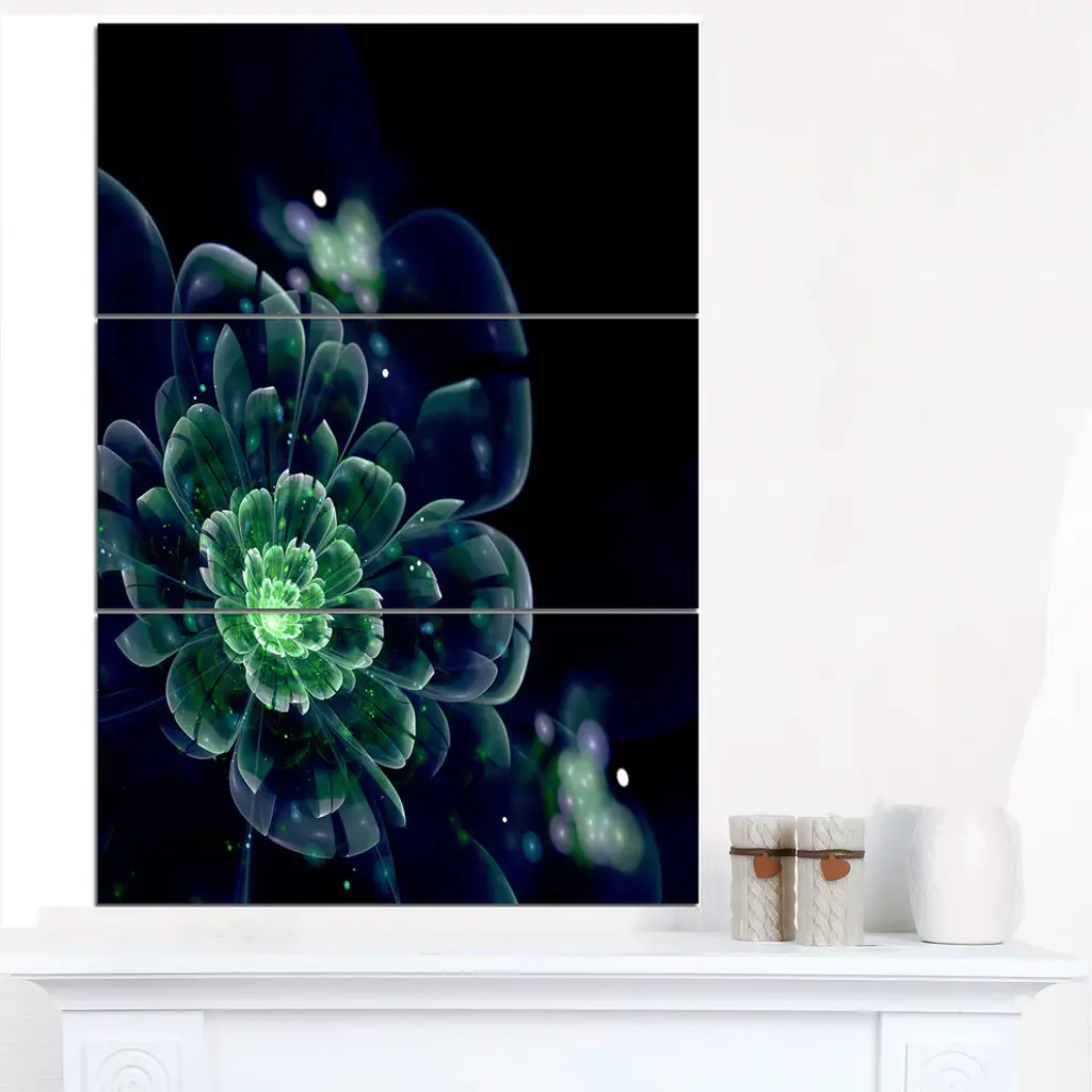 "Green Abstract Fractal Flower" Digital Wall Art, 3 Panels, 28"x36"