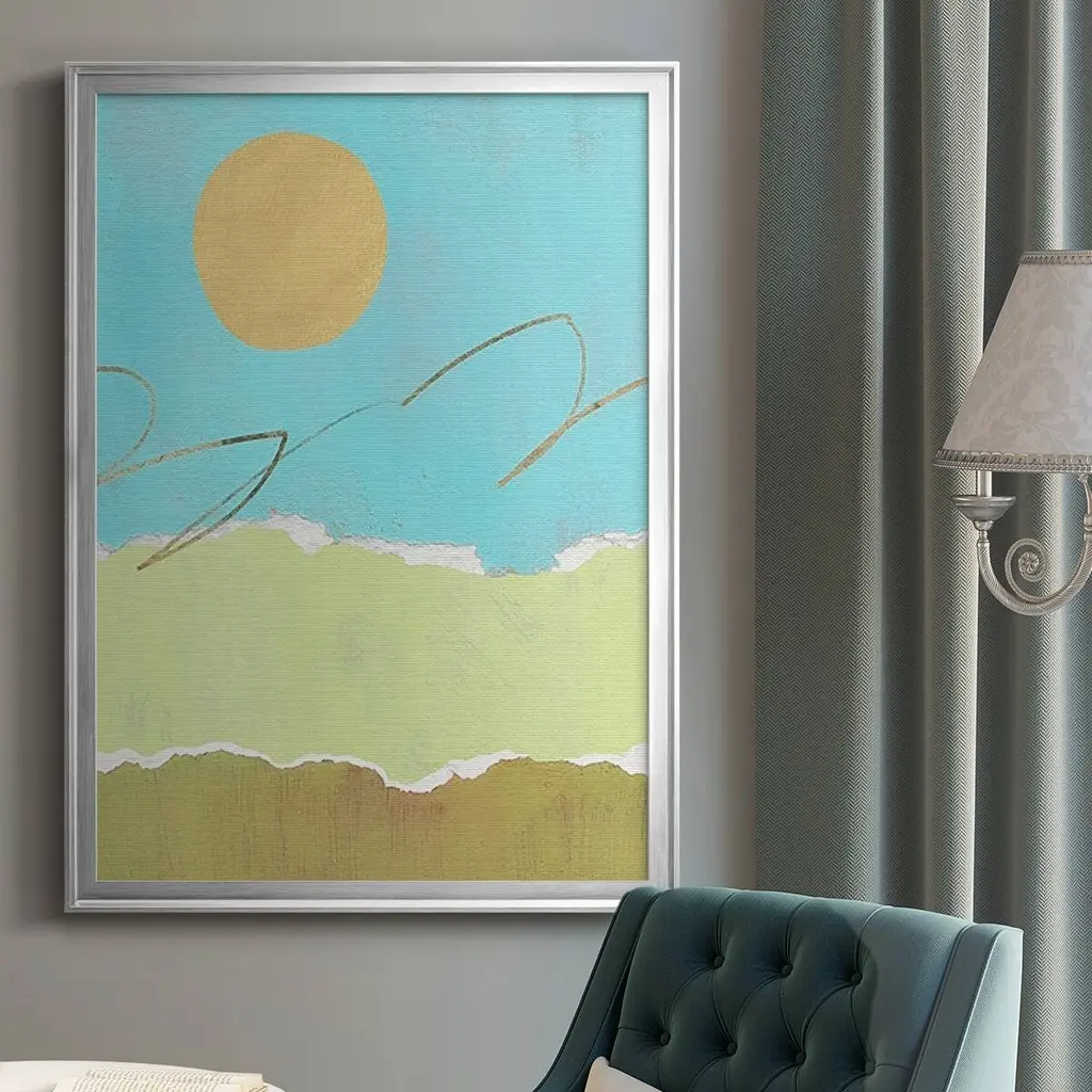 Green and Gold Pieced Landscape I Premium Framed Print - Ready to Hang A Premium Framed Print created to last. Framed in distressed wood and available in an array of sizes and colors Featuring a beveled a solid wood stretcher bar, each piece comes ready to hand 4 SIZES AVAILABLE 30.5''X42.5'' - Overall Size 26.5'X36.5'' - Overall Size 22.5''x30.5'' - Overall Size 18.5''x24.5'' - Overall Size Each piece is made to order. Each piece comes with hanging hardware. Made in the USA Ready to Hang