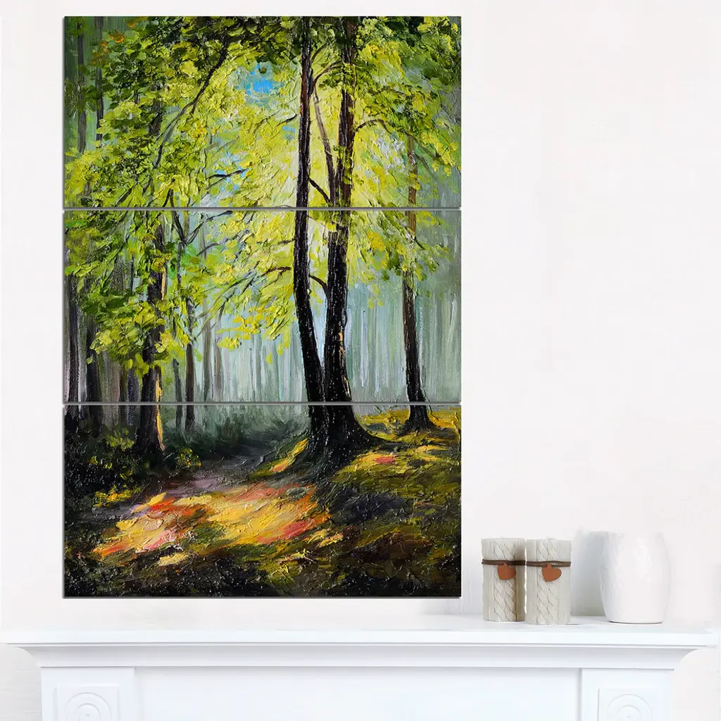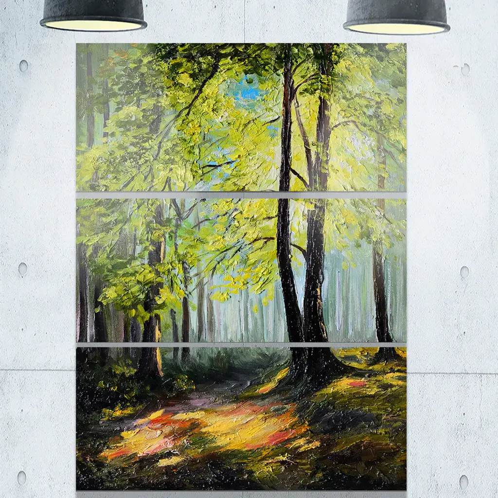 "Green Autumn Forest" Glossy Metal Wall Art, 3 Panels, 28"x36"