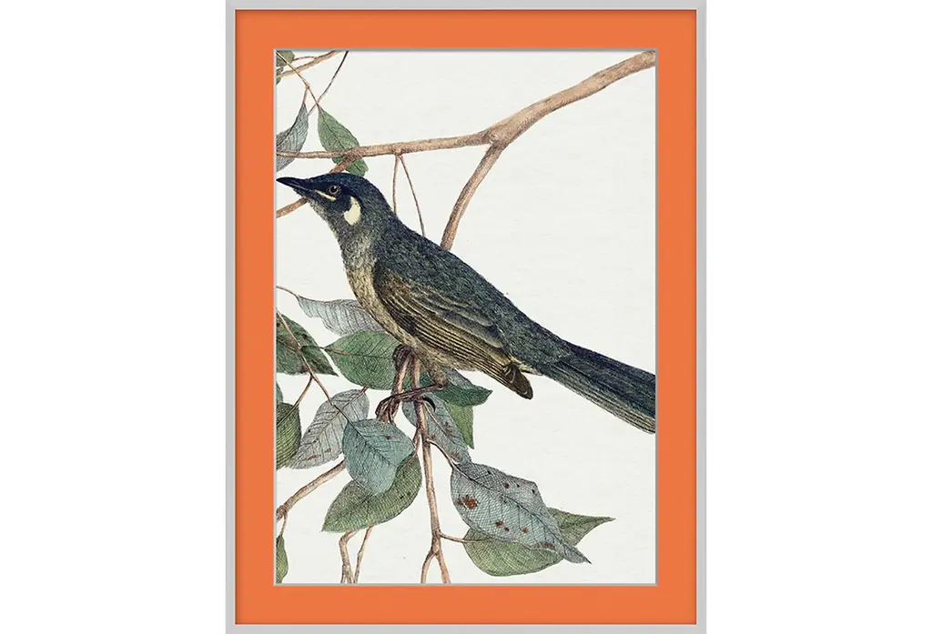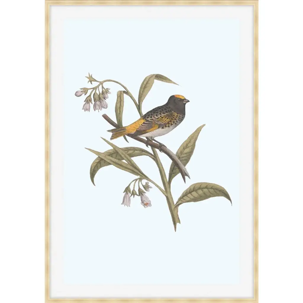 Designed by us and available only at One Kings Lane: A faithful reproduction of an antique ornithological study, this work is printed on matte paper, matted in deep green, and set under glass in a simple frame. Arrives ready to hang.