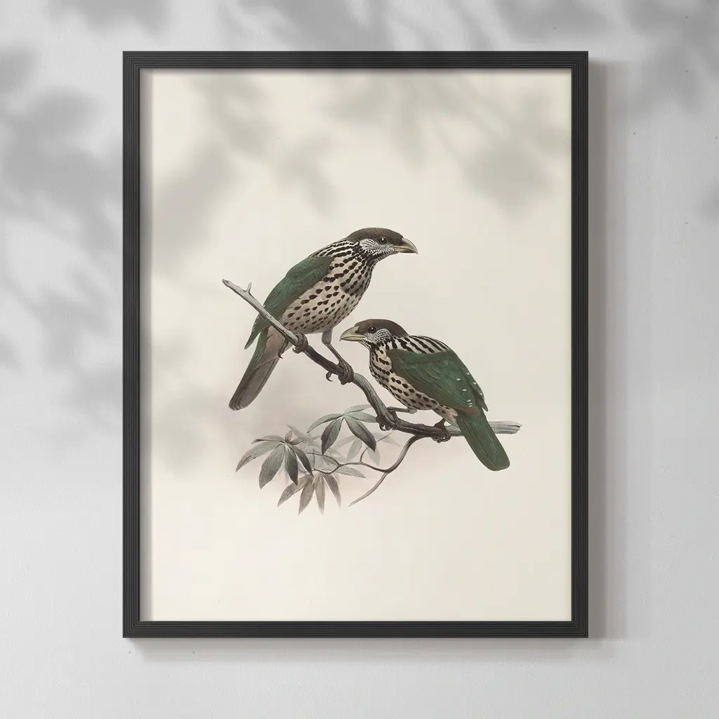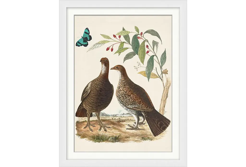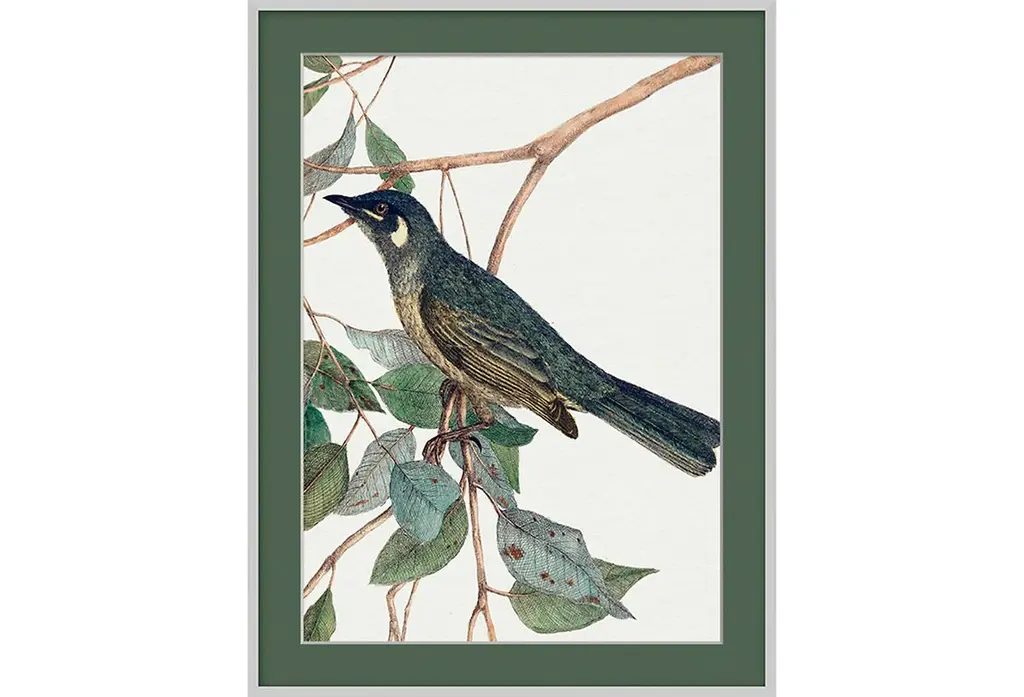 Designed by us and available only at One Kings Lane: A faithful reproduction of an antique ornithological study, this work is printed on matte paper, matted in deep green, and set under glass in a simple frame. Arrives ready to hang.