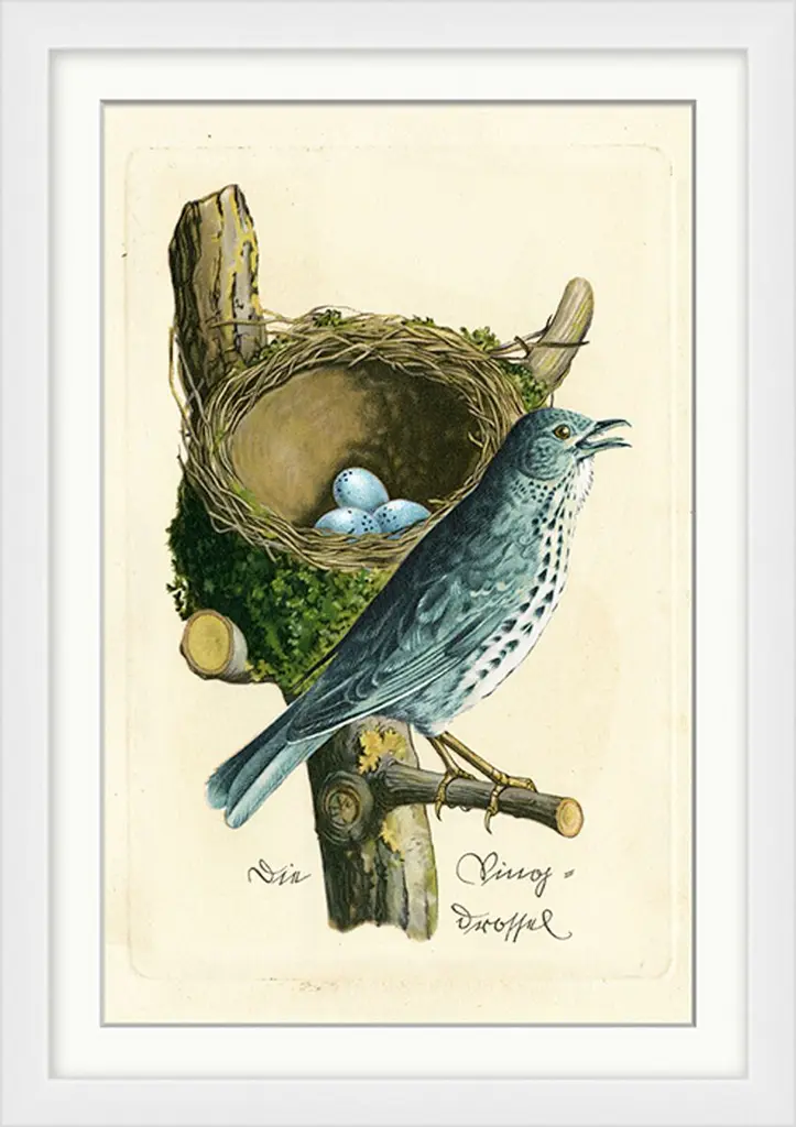 Designed by us and available only at One Kings Lane: A faithful reproduction of an antique ornithological study, this work is printed on matte paper, matted in deep green, and set under glass in a simple frame. Arrives ready to hang.