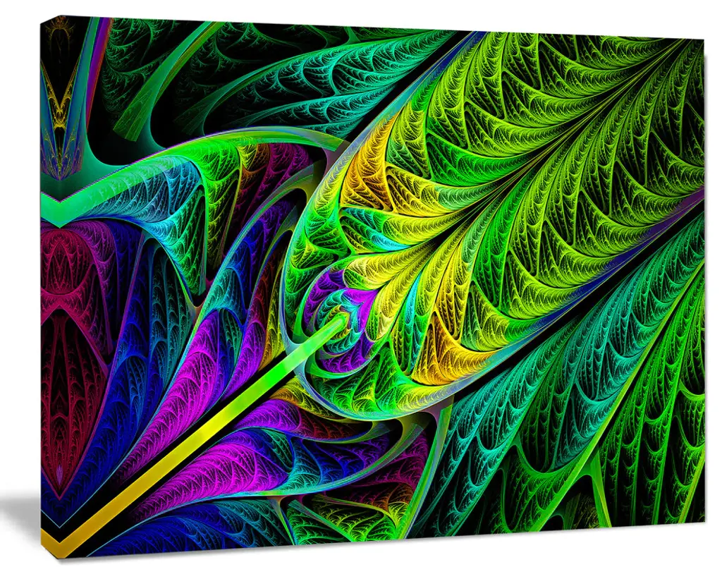Green Blue Fractal Stained Glass, Oversized Abstract Canvas Art Print, 60x40