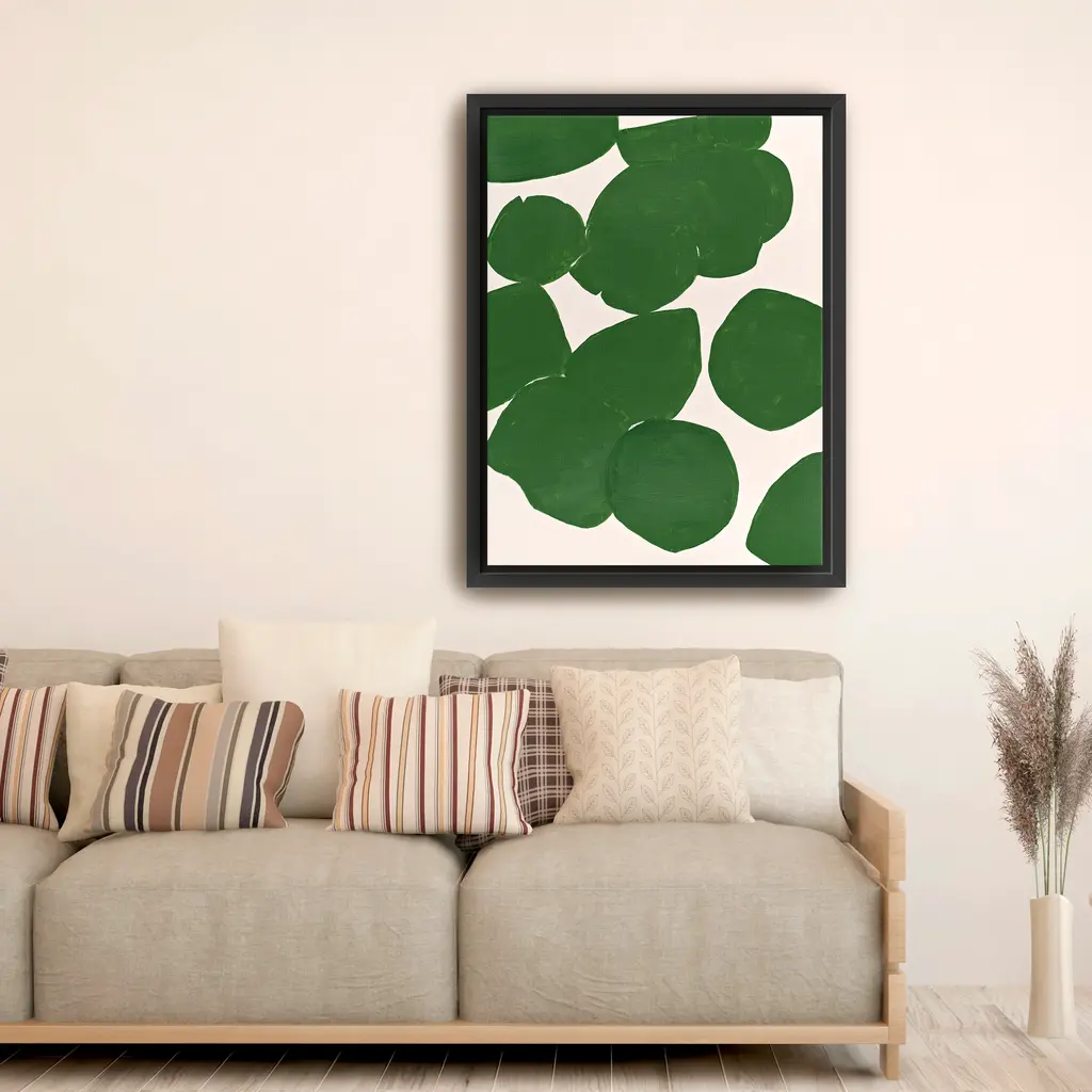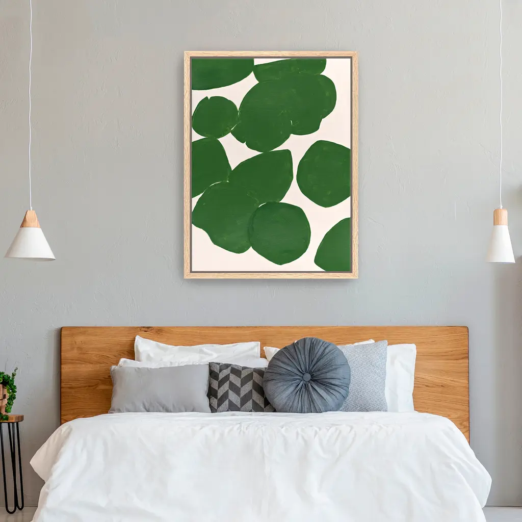 Bring calm to your space with this minimalist green abstract wall art, featuring soft organic shapes that evoke the serenity of nature. The rich, forest-green tones against a clean backdrop create a peaceful focal point. Our Gallery Wrap Canvas Prints are proudly assembled with high quality materials in California, USA. Each piece is printed on a thick, archival grade canvas using Giclee technology. It is then hand-stretched by our experienced artisans over solid wood bars, which will not warp over time. The final product is a piece personally crafted for you to confidently display on your wall. Care and Assembly: Ensure that the location of your piece has little to no exposure to heat, sunlight, and moisture. Wipe clean, only if needed. Each piece includes hanging hardware to hang on your wall vertically.