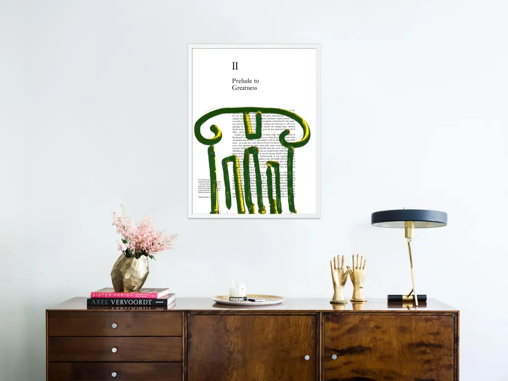 DESCRIPTION: Green Column by Virginia Chamlee in White Frame, XS Art Print SPECIFICATIONS: Type: Giclée Art Print on Matte Paper. Overall Size (in): 14x18. Image Size (in): 13x17. Orientation: Vertical. Flush/Float/Matted: Flush. Frame Color: White. Hanging Hardware: Picture Perfect. FRAMING: Each art work arrives framed and ready to hang. We use handmade frames with a plexiglass glazing front, because it offers less glare than standard glass. At this time, we only offer framed prints. ARTIST BIO: Virginia Chamlee had spent more than a decade collecting and selling vintage and contemporary works of art before she began selling her own. The bulk of her artwork is inspired by the colors and shapes found throughout her home state of Florida, and the power and beauty of the female form. A journalist for more than a decade, much of Virginia's art is inspired by the written word. She has been published in The Washington Post, Business Insider, Buzzfeed, Ms. Magazine, and Eater, among others.