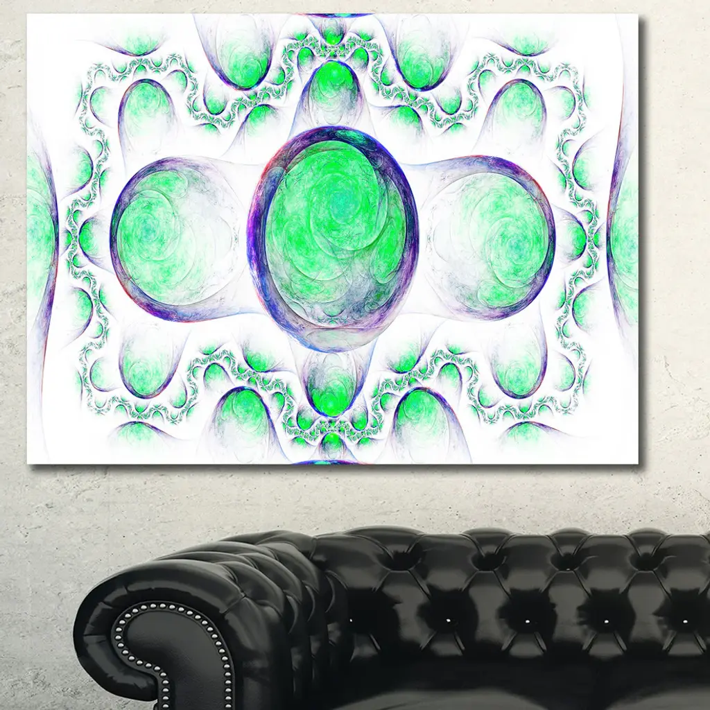 Green Exotic Pattern On White, Oversized Abstract Canvas Art Print, 60x40