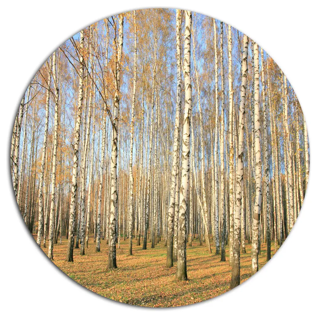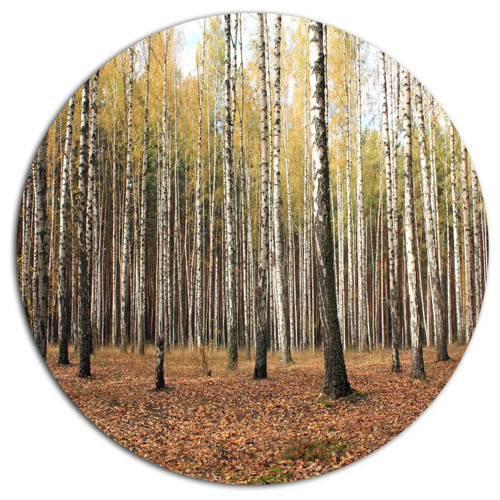Bring Contemporary Abstraction to your home with this large Circle Metal wall art. This Green Fall Forest with Thick Trees Metal Artwork makes it the focal point of any room or office. - White Gloss Coating ensures colors are extra vibrant with light reflection.- Aluminum grade Sheet Metal with 1 inch mounting frame on the back giving the illusion that the artwork is floating on the wall..- Mounting Brackets are included along with instructions.- High Quality Digital images are created directly into a glossy aluminum panel producing a stunning and captivating print into the glossy finish of the metal.- Water, Fire and Scratch resistant HD Aluminum panels.- Looks better than any photo paper and guaranteed to last at least 20 years- Easy to clean with a microfiber cloth. Colors are far superior to regular Canvas Art. - Easy to Hang