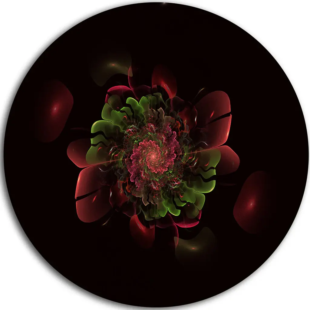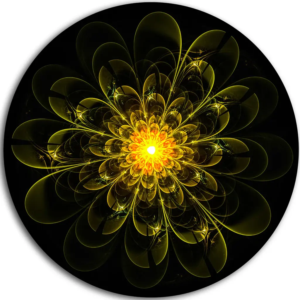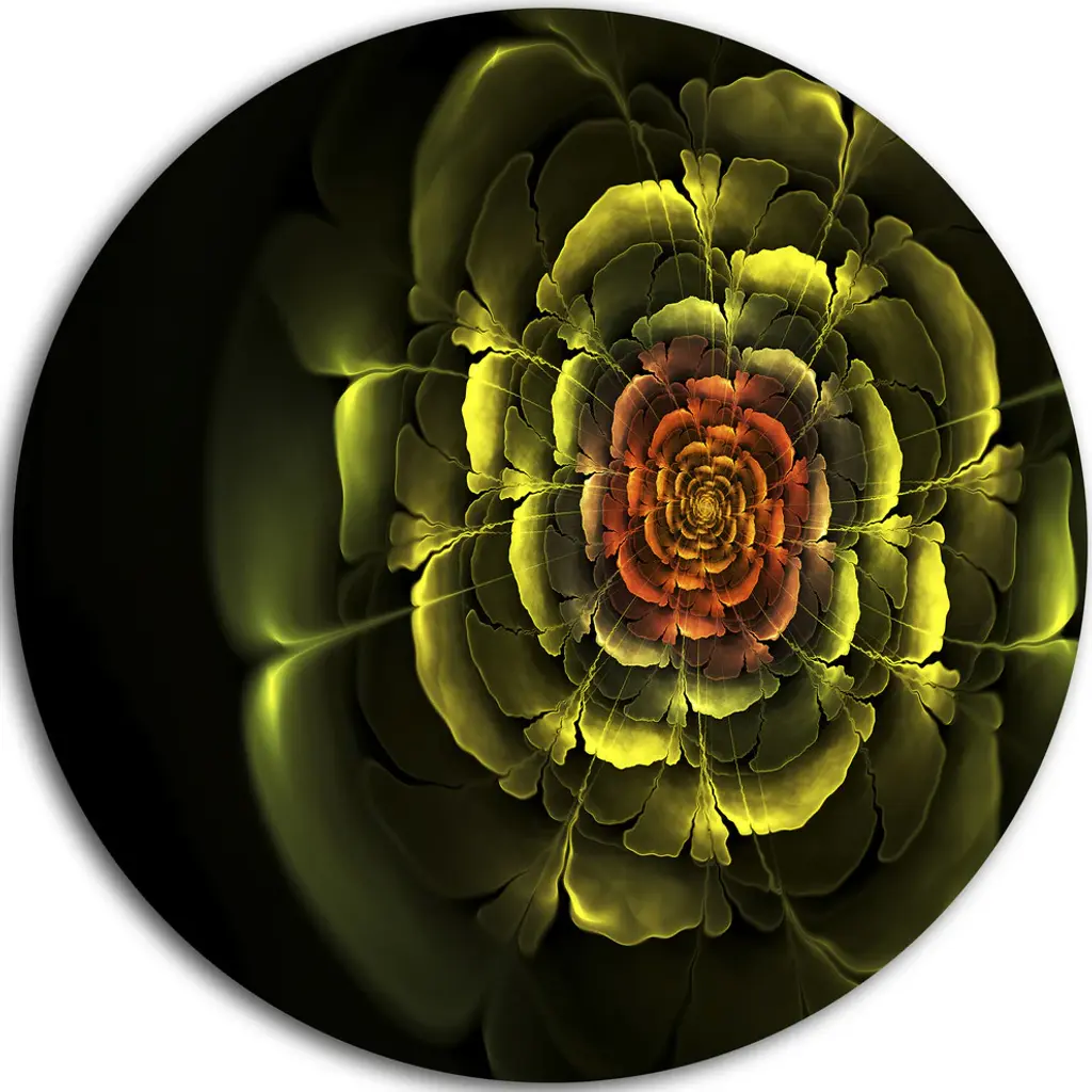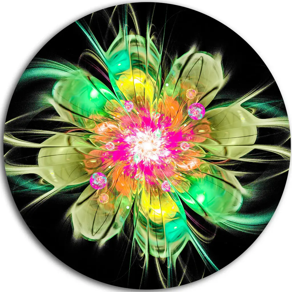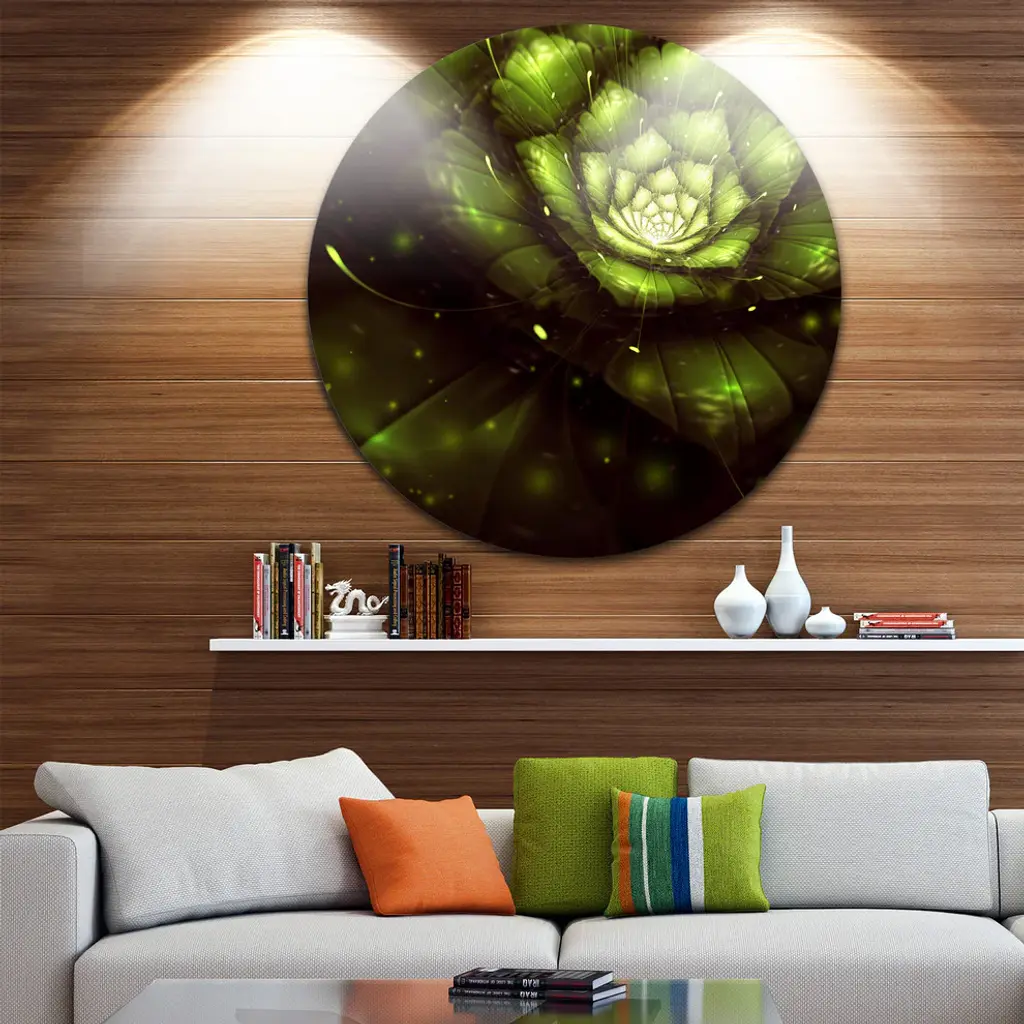 Green Flower With Sun Rays, Floral Digital Art Disc Metal Wall Art, 38"