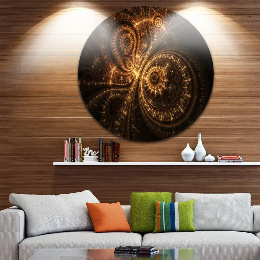 Bring Contemporary Abstraction to your home with this large Circle Metal wall art. This Green Fractal Flower in Dark Metal Artwork makes it the focal point of any room or office. - White Gloss Coating ensures colors are extra vibrant with light reflection.- Aluminum grade Sheet Metal with 1 inch mounting frame on the back giving the illusion that the artwork is floating on the wall..- Mounting Brackets are included along with instructions.- High Quality Digital images are created directly into a glossy aluminum panel producing a stunning and captivating print into the glossy finish of the metal.- Water, Fire and Scratch resistant HD Aluminum panels.- Looks better than any photo paper and guaranteed to last at least 20 years- Easy to clean with a microfiber cloth. Colors are far superior to regular Canvas Art. - Easy to Hang