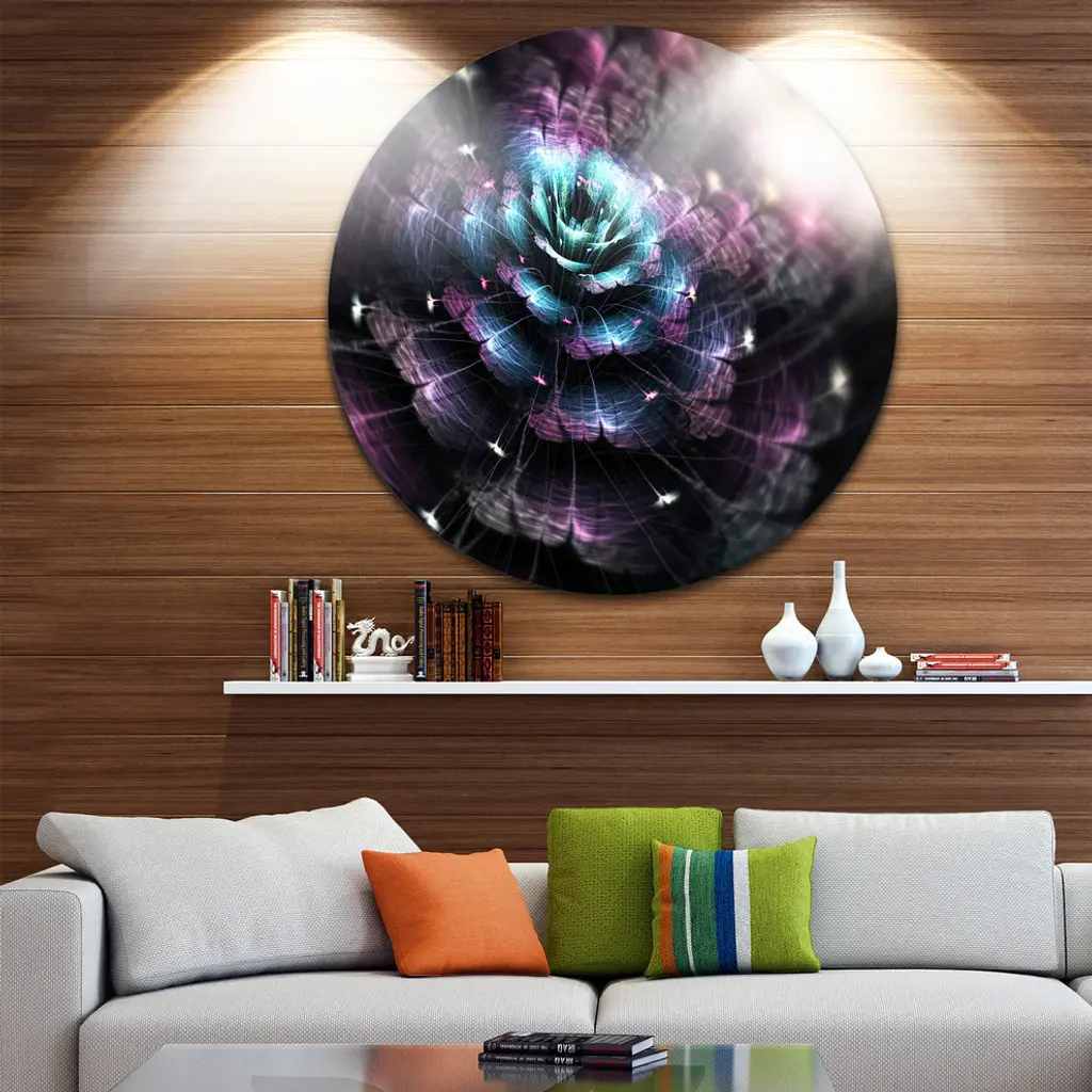 Green Fractal Flower In Dark, Floral Large Disc Metal Wall Art, 23"