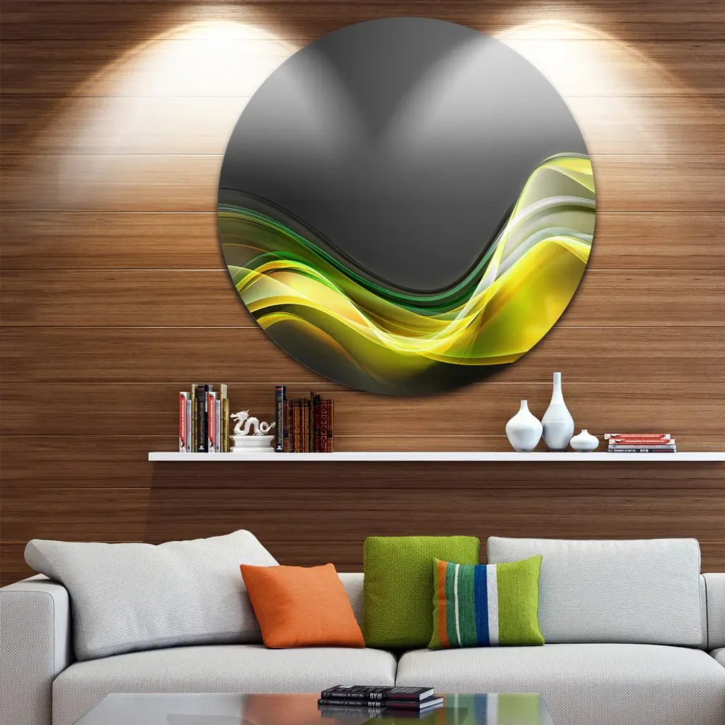 Bring Contemporary Abstraction to your home with this large Circle Metal wall art. This Green Gold Texture Pattern Metal Artwork makes it the focal point of any room or office. - White Gloss Coating ensures colors are extra vibrant with light reflection.- Aluminum grade Sheet Metal with 1 inch mounting frame on the back giving the illusion that the artwork is floating on the wall..- Mounting Brackets are included along with instructions.- High Quality Digital images are created directly into a glossy aluminum panel producing a stunning and captivating print into the glossy finish of the metal.- Water, Fire and Scratch resistant HD Aluminum panels.- Looks better than any photo paper and guaranteed to last at least 20 years- Easy to clean with a microfiber cloth. Colors are far superior to regular Canvas Art. - Easy to Hang
