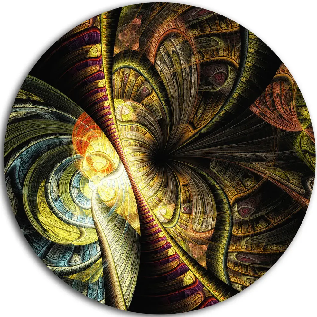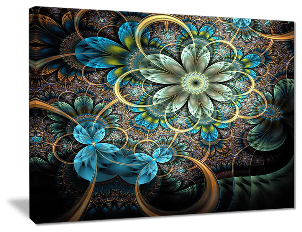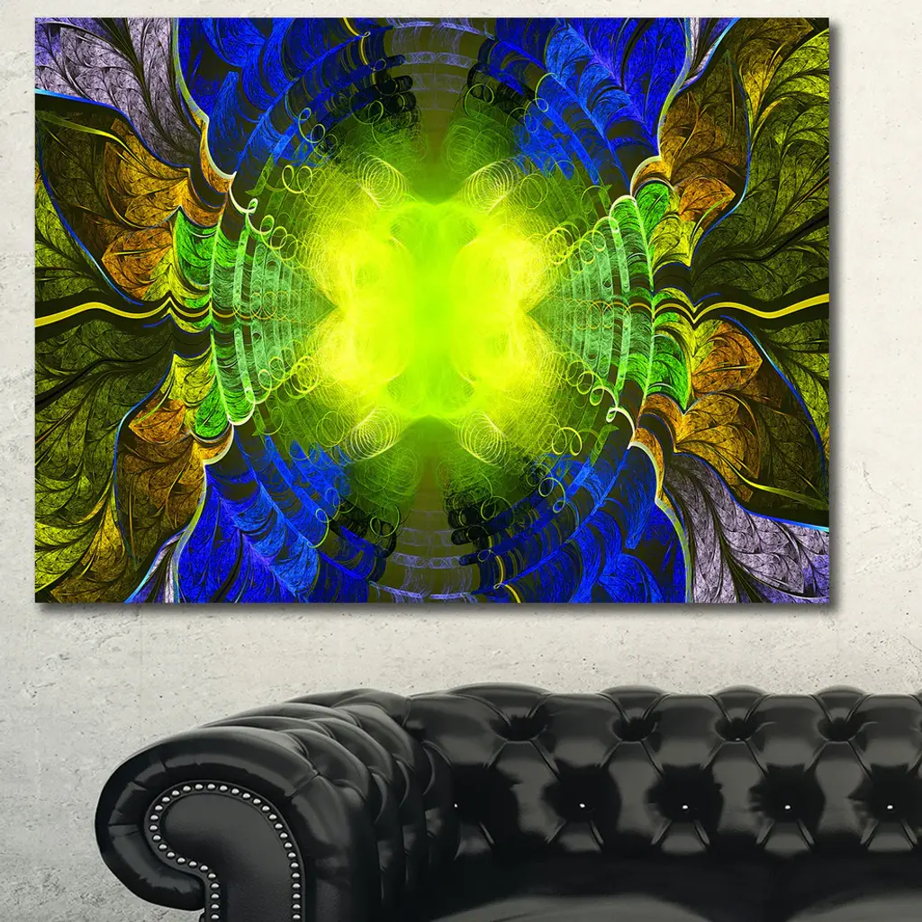 Green Golden Fractal Stained Glass, Oversized Abstract Canvas Art Print, 60x40