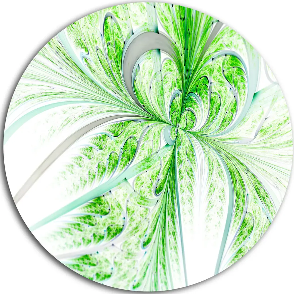 Bring Contemporary Abstraction to your home with this large Circle Metal wall art. This Green Grungy Floral Fractal Shapes Metal Artwork makes it the focal point of any room or office. - White Gloss Coating ensures colors are extra vibrant with light reflection.- Aluminum grade Sheet Metal with 1 inch mounting frame on the back giving the illusion that the artwork is floating on the wall..- Mounting Brackets are included along with instructions.- High Quality Digital images are created directly into a glossy aluminum panel producing a stunning and captivating print into the glossy finish of the metal.- Water, Fire and Scratch resistant HD Aluminum panels.- Looks better than any photo paper and guaranteed to last at least 20 years- Easy to clean with a microfiber cloth. Colors are far superior to regular Canvas Art. - Easy to Hang