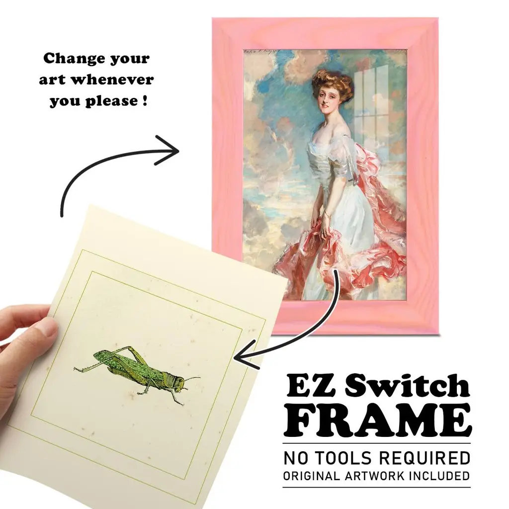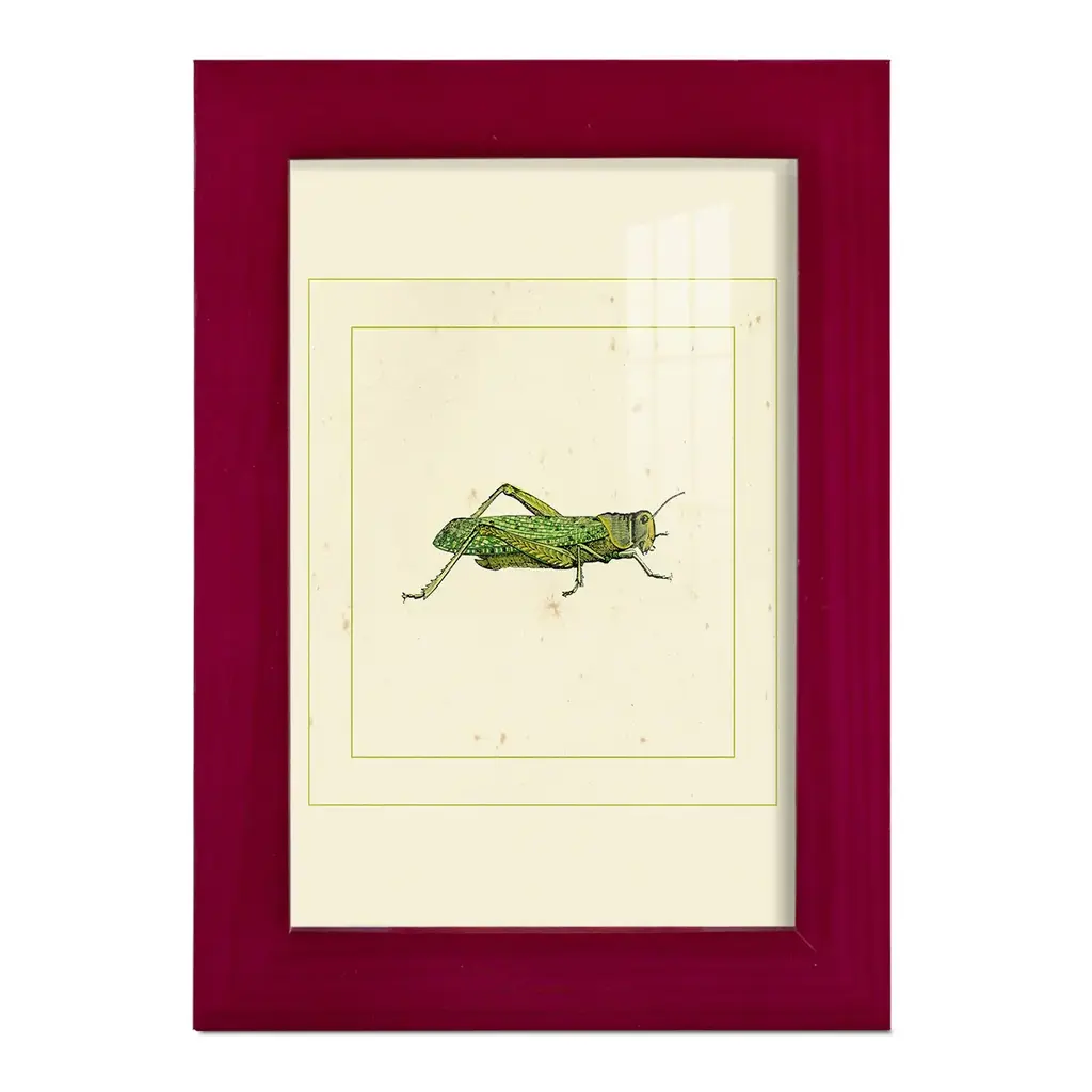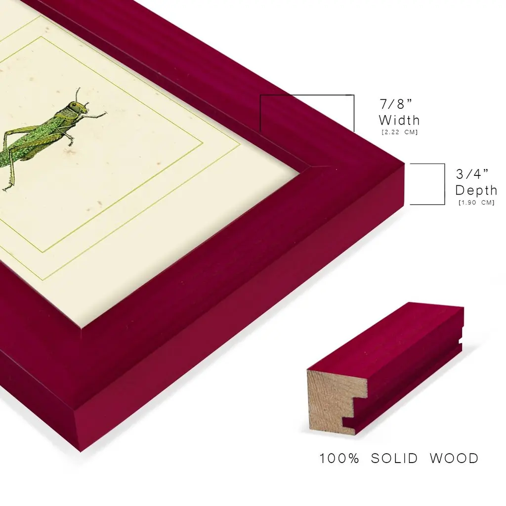 Green Hopper -EZ SWITCH Framed Print w/glass-Cherry Red A delightful, framed print. Featuring a solid wood frame with real wood glass. This premium print is giclee quality. In addition, every frame features a removable back and table top stand. This allows you to change your art in the future or to just stand the art on a table for a new look. We are sure you'll enjoy our new series of EZ SWITCH Framed Art. Solid Wood Frame Real Glass Removable / Replaceable Art Built in Tabletop Stand Sizes range from 4x6 up to 12x15 - buy just one or pair them up as sets as you see fit.