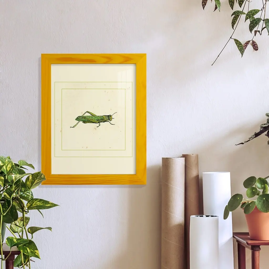 Green Hopper -Framed Print W/glass-Cherry Red - 12x15 - Yellow