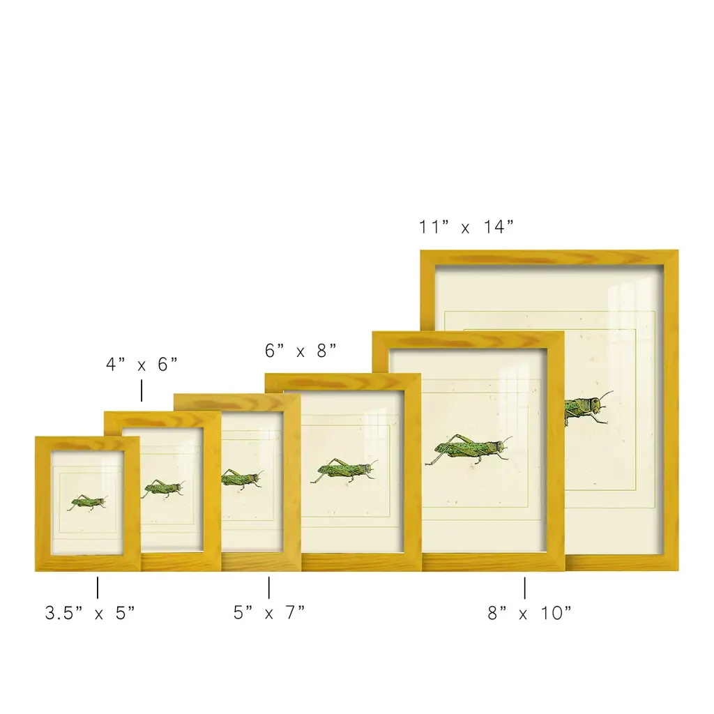 Green Hopper -EZ SWITCH Framed Print w/glass-Cherry Red A delightful, framed print. Featuring a solid wood frame with real wood glass. This premium print is giclee quality. In addition, every frame features a removable back and table top stand. This allows you to change your art in the future or to just stand the art on a table for a new look. We are sure you'll enjoy our new series of EZ SWITCH Framed Art. Solid Wood Frame Real Glass Removable / Replaceable Art Built in Tabletop Stand Sizes range from 4x6 up to 12x15 - buy just one or pair them up as sets as you see fit.