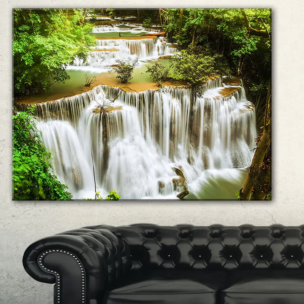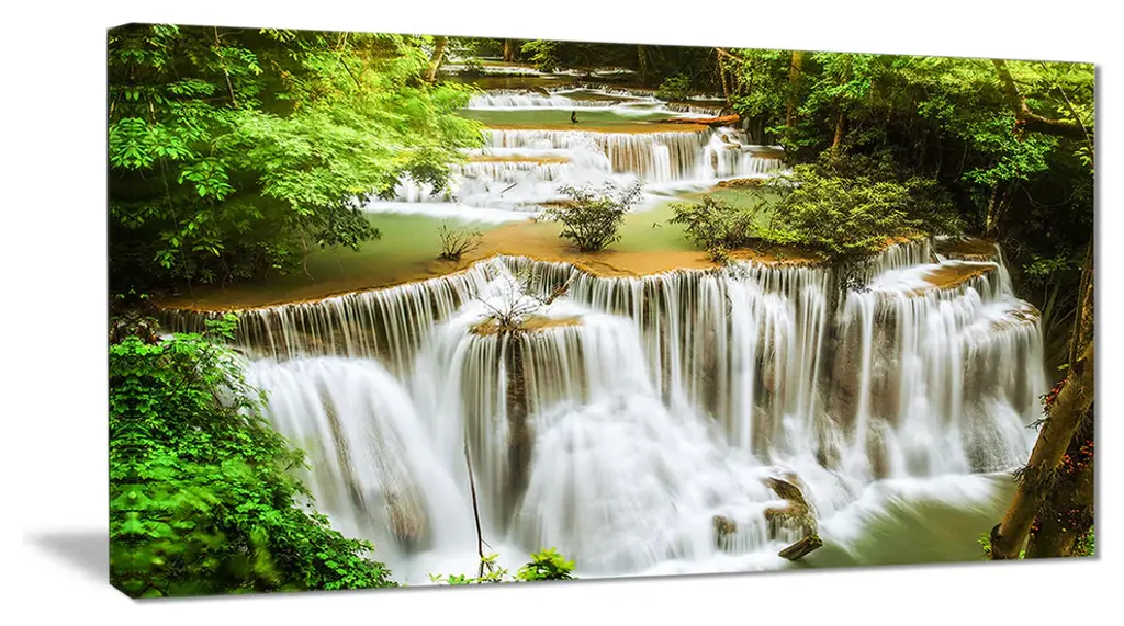 The Green Huymea Kamin Waterfall canvas art print is sure to make an impression on anyone who sees it. This artwork is gallery wrapped around a 1-inch solid wood frame and arrives carefully packaged and entirely ready to hang on the wall. Design Art only uses the highest resolution and pigments to ensure a crisp colorful print that is never faded or pixelated. This artwork is sure to be a conversation starter in any home or office.