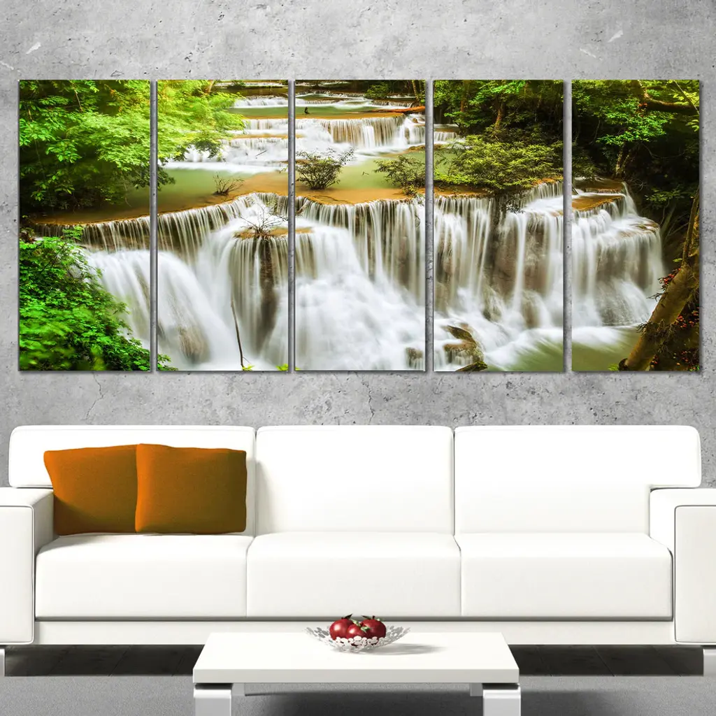 "Green Huymea Kamin Waterfall" Canvas Photo Print, 5 Panels, 60"x28"