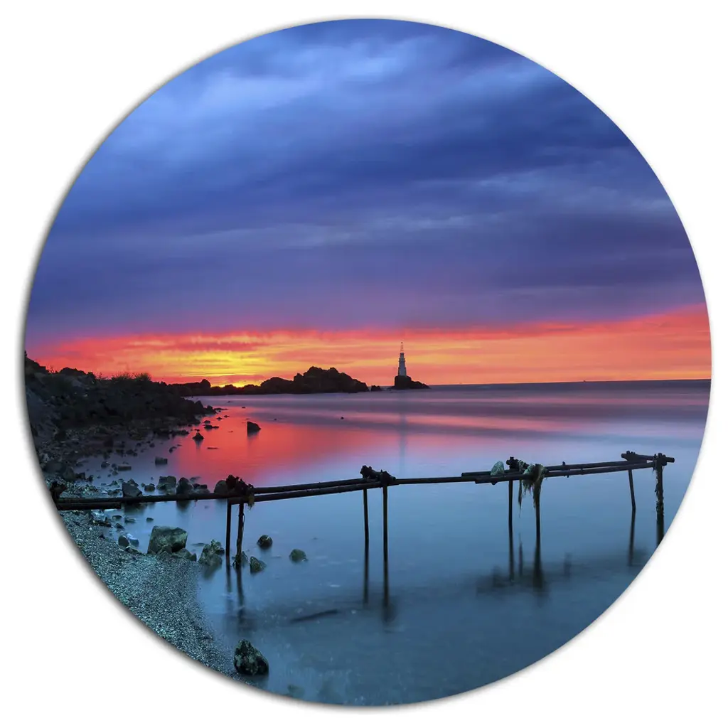 Bring Contemporary Abstraction to your home with this large Circle Metal wall art. This Green Isle at Stony Coast Metal Artwork makes it the focal point of any room or office. - White Gloss Coating ensures colors are extra vibrant with light reflection.- Aluminum grade Sheet Metal with 1 inch mounting frame on the back giving the illusion that the artwork is floating on the wall..- Mounting Brackets are included along with instructions.- High Quality Digital images are created directly into a glossy aluminum panel producing a stunning and captivating print into the glossy finish of the metal.- Water, Fire and Scratch resistant HD Aluminum panels.- Looks better than any photo paper and guaranteed to last at least 20 years- Easy to clean with a microfiber cloth. Colors are far superior to regular Canvas Art. - Easy to Hang