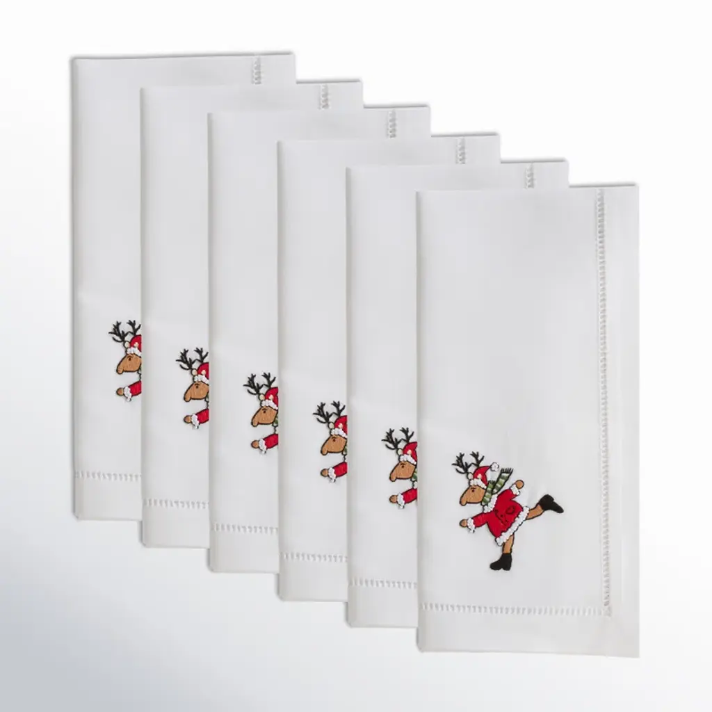 Bring a dash of fun to your festive decor with this exclusive, hand-embellished tea towel from India, showcasing our playful Jingle-Mingle artwork. It's full of Christmas character with a bright-green ground embroidered with nutcrackers toasting and the wordplay, "Pa Rum Pum Pum Pum." A new twist on our popular dimensional kitchen towels, it makes a merry gift when paired with any of our bar accessories, scented candles, or specialty spirits.