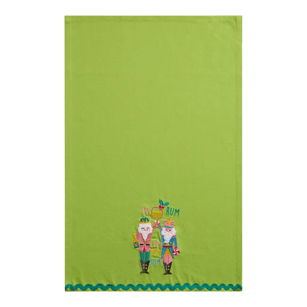 Green Jingle Mingle Nutcracker Rum Pa Pum Embroidered Kitchen Towel
