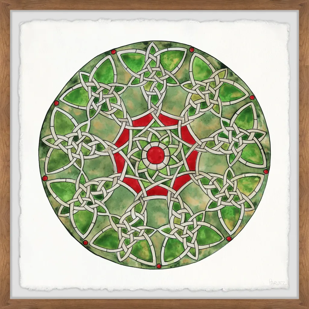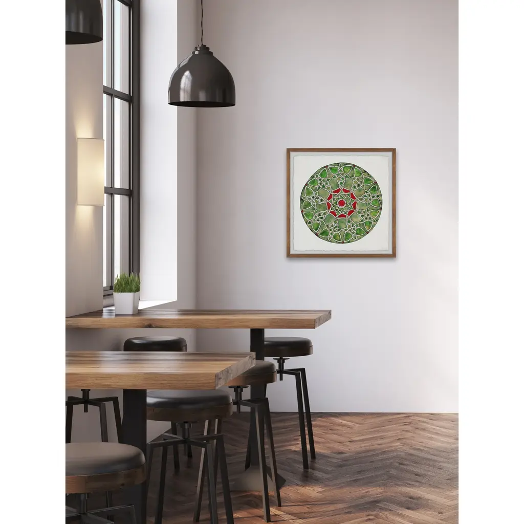 'Green Knotted Flower' Framed Painting Print - Multi-Color - 24 X 24