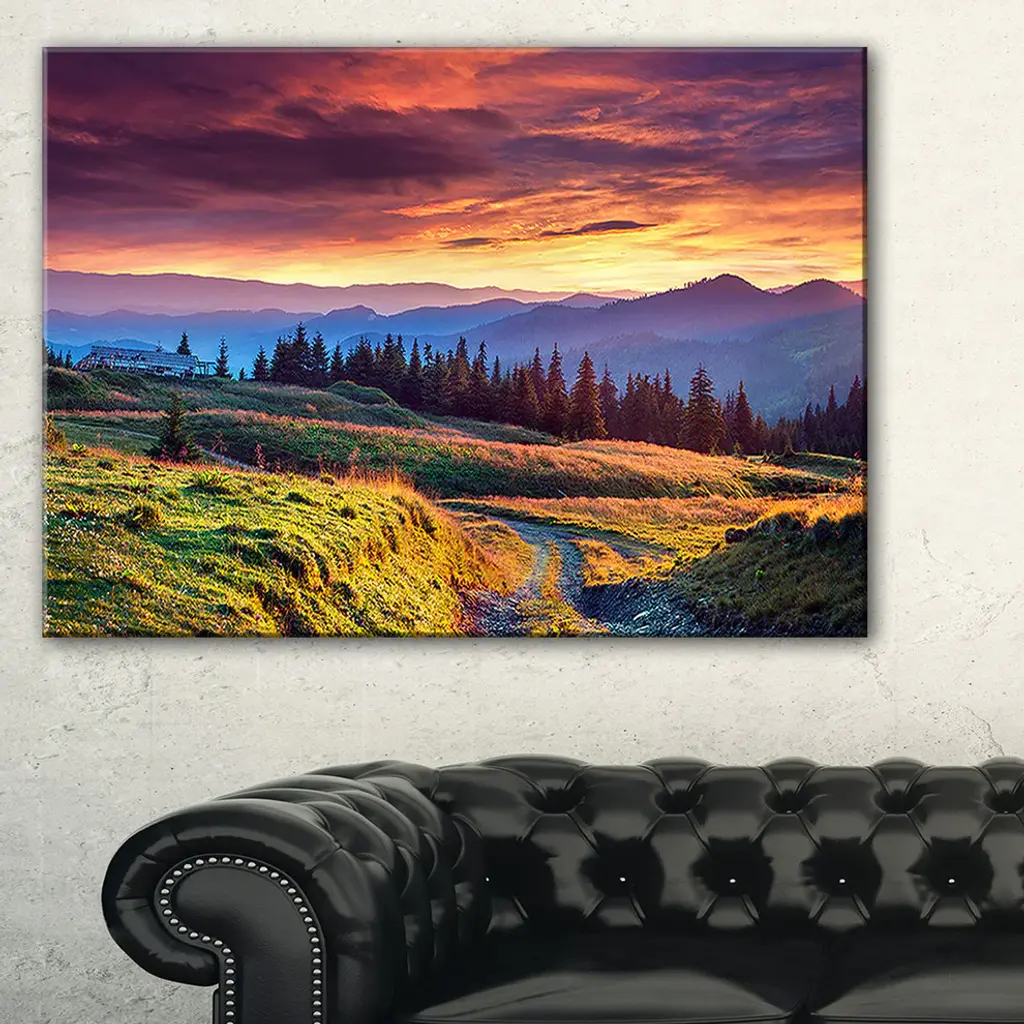 The Green Land Under Overcast Sky canvas art print is sure to make an impression on anyone who sees it. This artwork is gallery wrapped around a 1-inch solid wood frame and arrives carefully packaged and entirely ready to hang on the wall. Design Art only uses the highest resolution and pigments to ensure a crisp colorful print that is never faded or pixelated. This artwork is sure to be a conversation starter in any home or office.