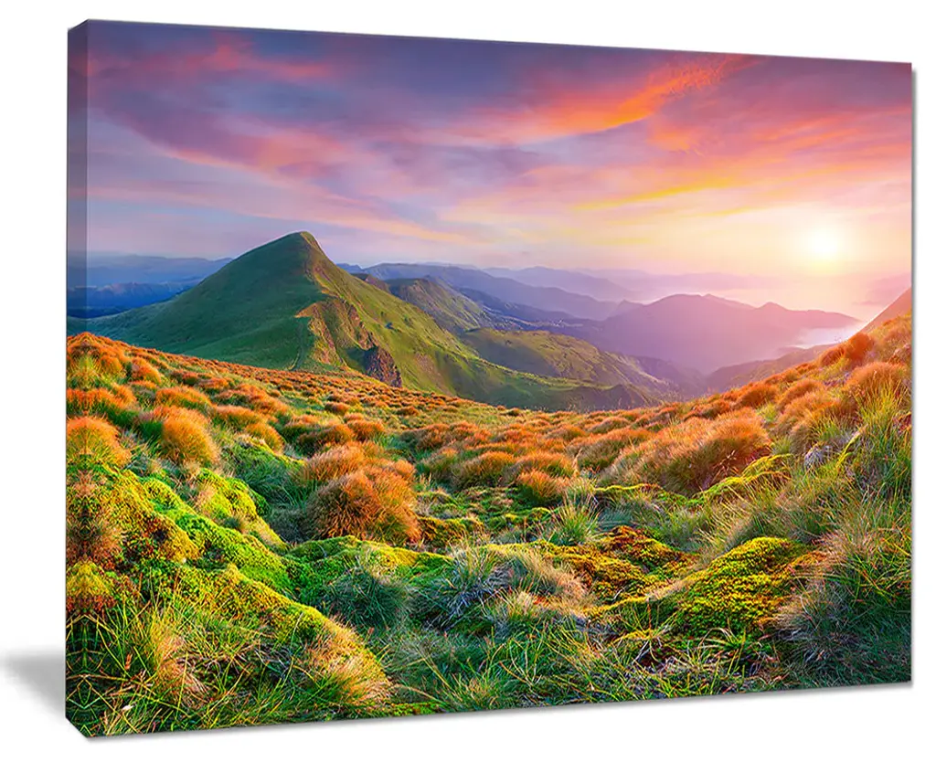 The Green Land Under Overcast Sky canvas art print is sure to make an impression on anyone who sees it. This artwork is gallery wrapped around a 1-inch solid wood frame and arrives carefully packaged and entirely ready to hang on the wall. Design Art only uses the highest resolution and pigments to ensure a crisp colorful print that is never faded or pixelated. This artwork is sure to be a conversation starter in any home or office.