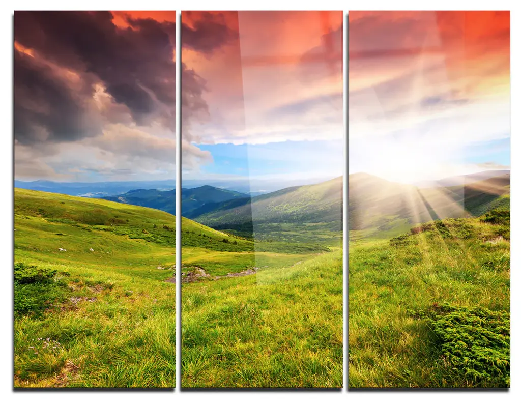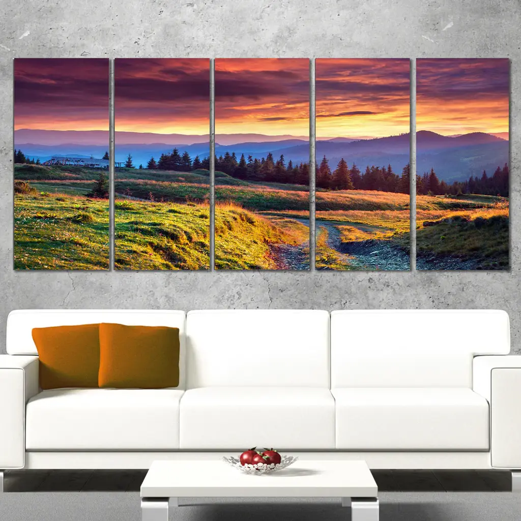 "Green Land Under Overcast Sky" Landscape Canvas Photo Print, 5 Panels, 60"x28"