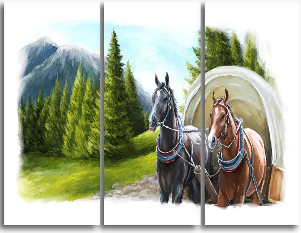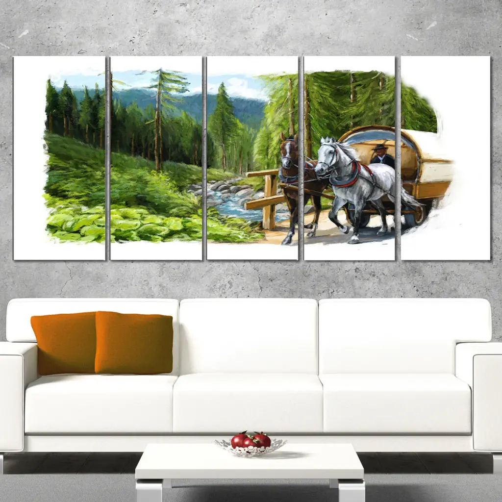 "Green Landscape With Horse" Digital Art Canvas Print, 5 Panels, 60"x28"