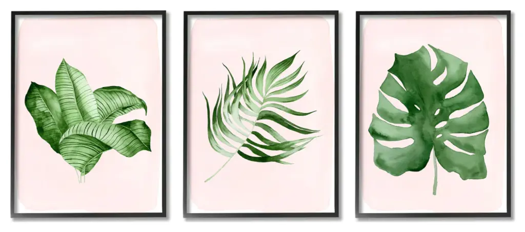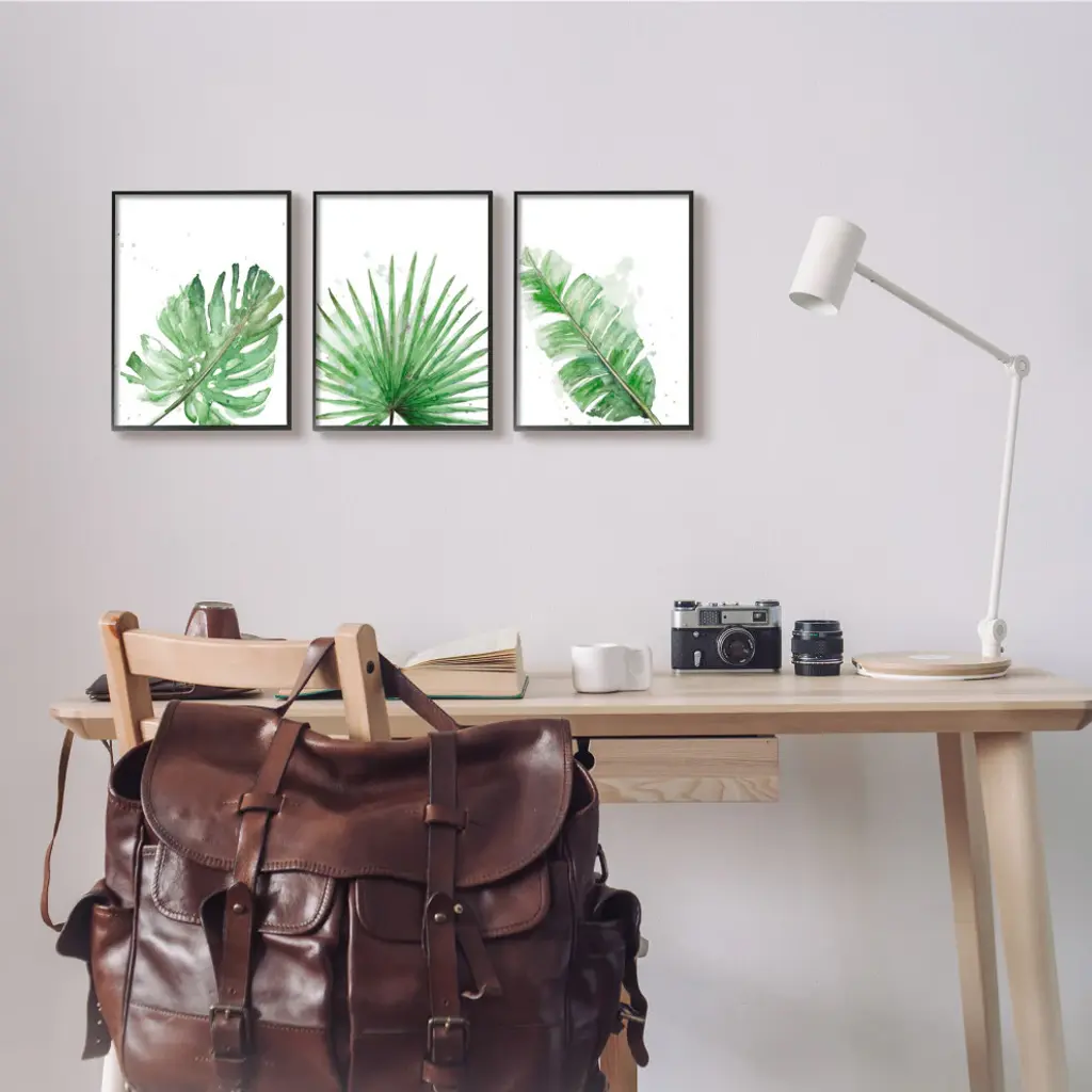 Green Leaves Modern Green Tropical Palm Fans ,3pc, Each 11 X 14